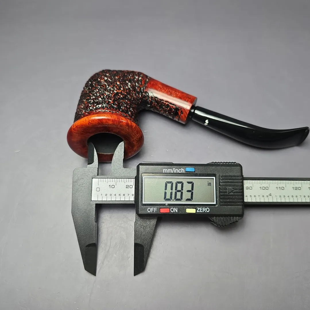 In the 2000s, Caminetto produced a series of limited edition pipes exclusively for their US importer, James Norman Ltd., who also owned a shop in New Jersey. These pipes were the James Norman Caminetto Collection, or J.N.C.C., and were distinct from any of the Caminetto shapes that one might find anywhere else. In fact, those who were reading Pipes and Tobaccos magazine back in the day might recall the large advertisements for these pipes put out by James Norman, alongside other brands the company imported, such as Ferndown. The 2004 Special Model, as it was also called, was this interesting calabash-esque sitter with a push stem (as far as I recall, all of the J.N.C.C. Special Models had smooth “cap”-like rims), dressed in a very Italian, rusticated finish and draped in a two-tone top coat.