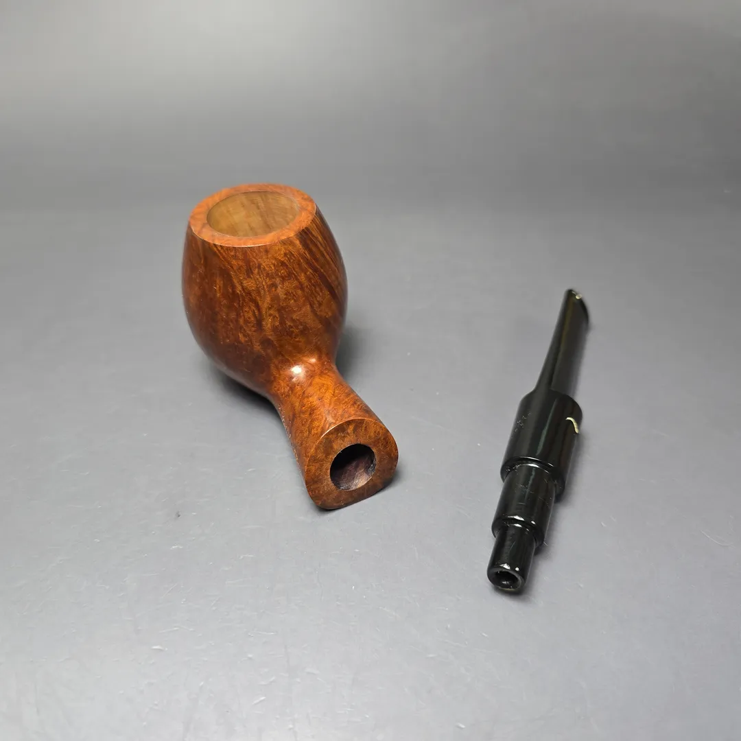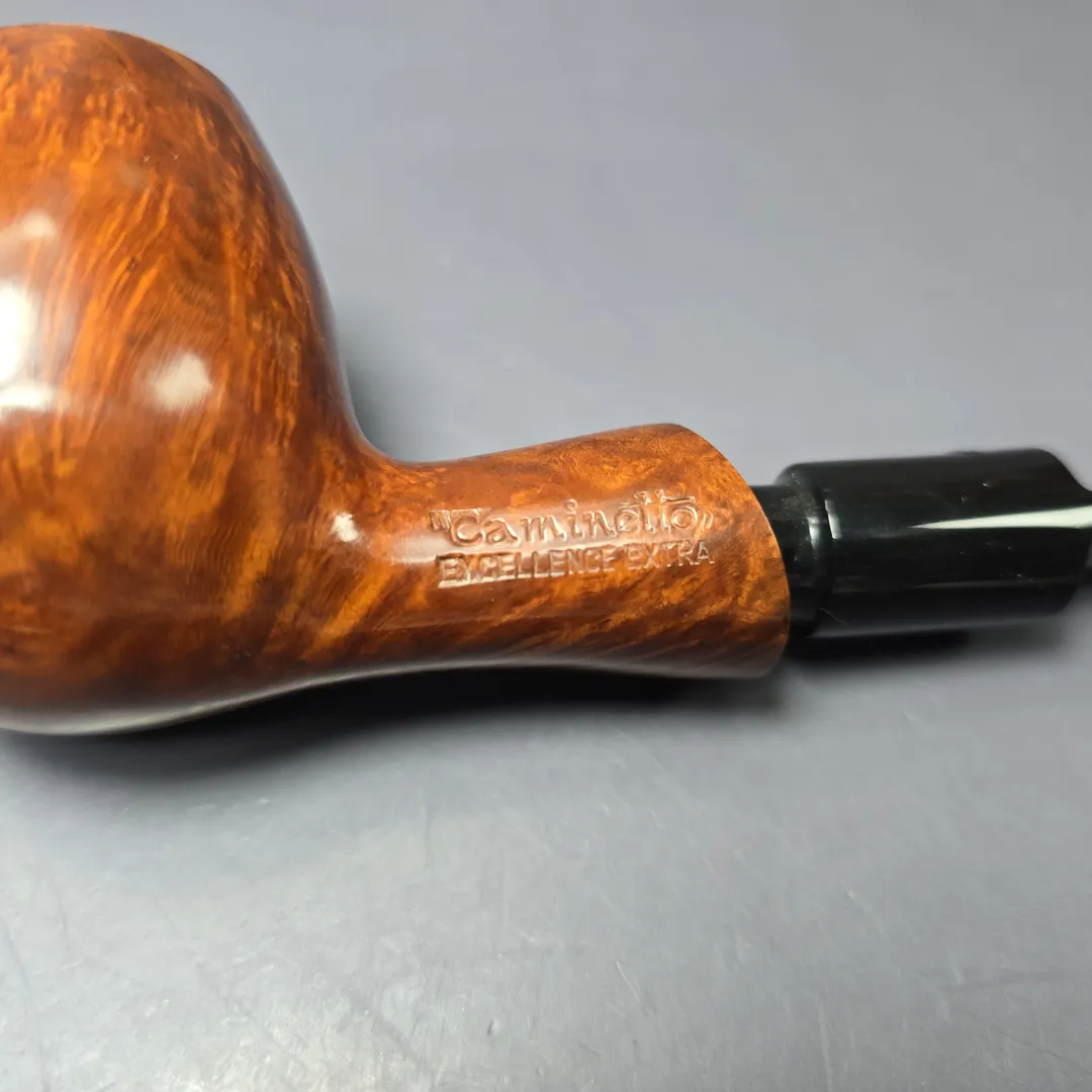 This one is an Ascorti/Radice era Caminetto and also comes from the early, extra high-grade Excellence Extra line. One can see the beginnings of some of the later Caminetto workshop’s apple and billiard shapes to it, especially with its angled shank end and Peterson-style “space fitting” fitment, though as it is a pipe from the first era, it is most certainly one of one.