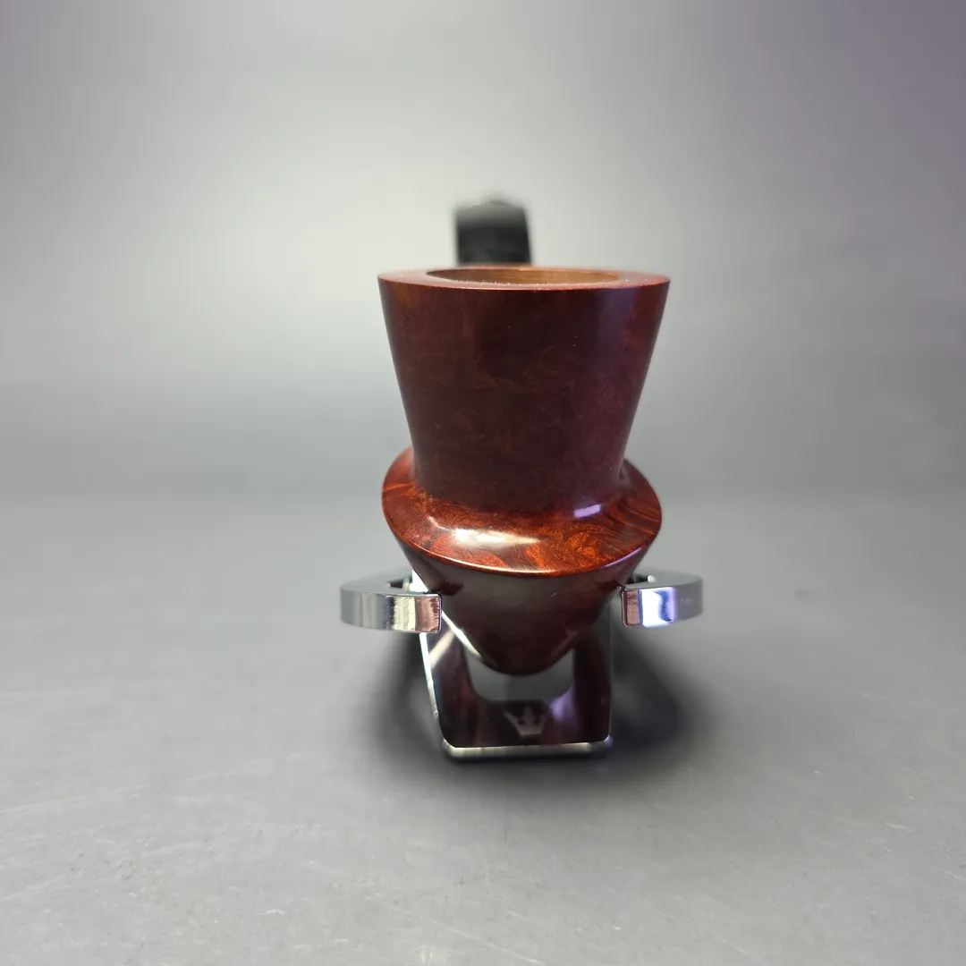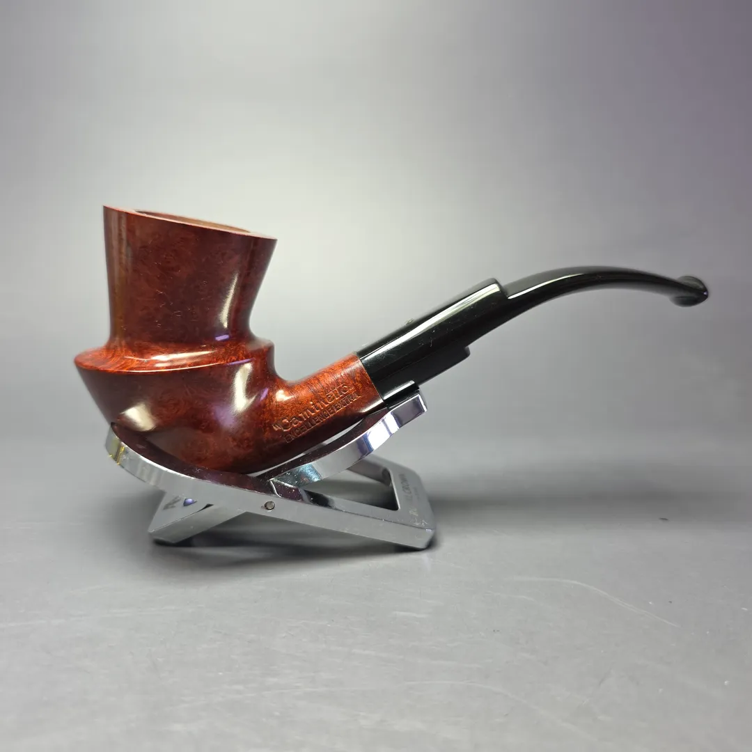 This one is a fascinating example of a Caminetto from that first era. It belongs to the high-end of Caminetto’s output, being an Excellence Extra grade, which itself was—or would later become—part of the Prestige series exclusive to Caminetto’s main US distributor, The Tinder Box. Even more interesting, however, is the shaping. I have seen Caminettos a little similar to this one before, though I could probably count them on one hand, and none were among the “standard” shapes made by Ascorti and Radice’s workshop. One might call it a “vase,” though, as a fan of English handmades, I can’t help but note similarities to Charatan freehands, specifically the Cup and Saucer designs created by Barry Jones. Then again, if calculus could be discovered independently by two individuals separated by continents, so too could a great pipe shape.