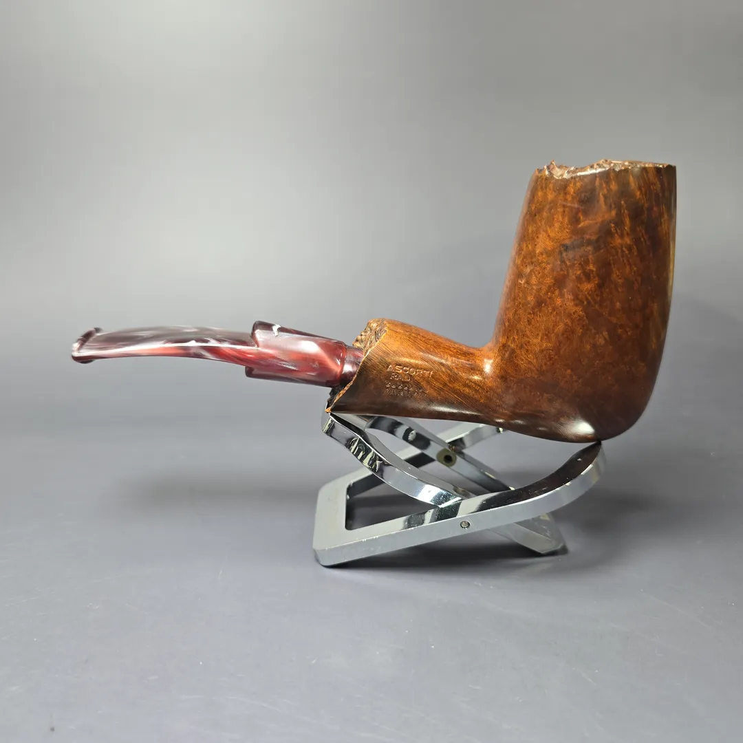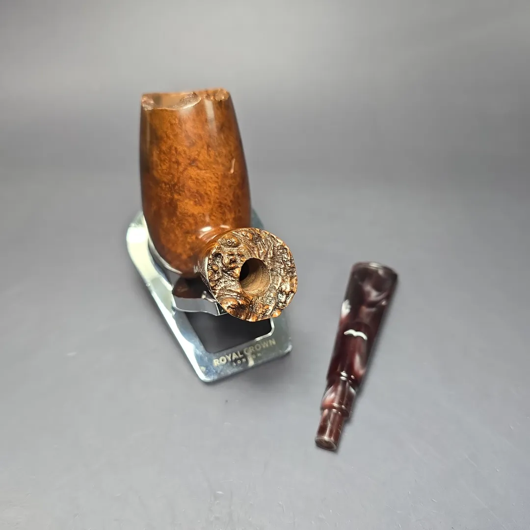 This particular Caminetto is another such pipe, being a Moustache-grade, freehand stack with one of the make’s signature, swirling Lucite stems. As with the Caminettos that would come after it, it shows off the familiar rugged shaping and distinctive color palette, without conforming to any of the shape charts that would soon dictate Caminetto production.