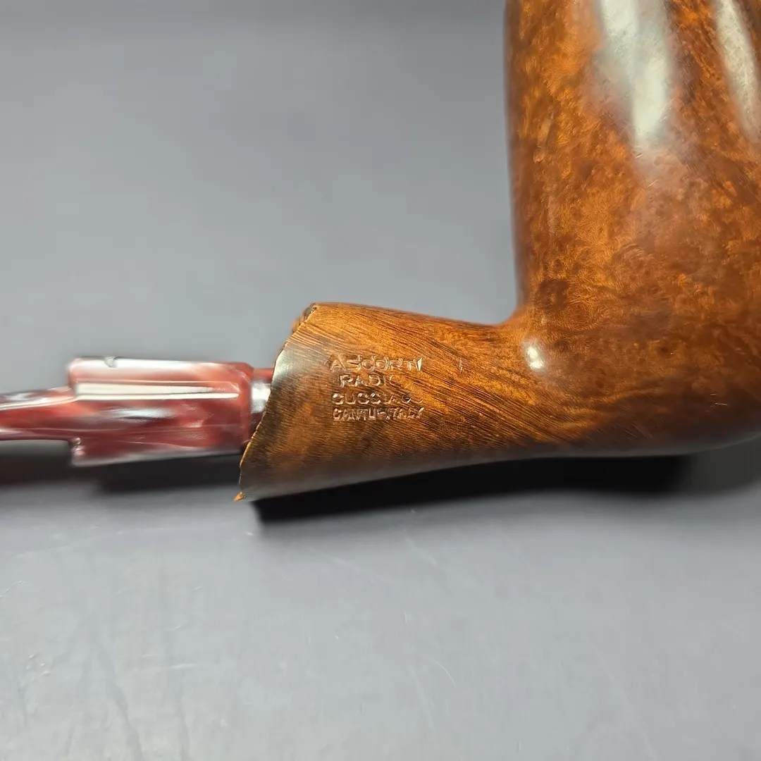 Caminetto was founded around 1968, beginning as a small workshop with Guiseppe Ascorti and Luigi Radice as its principal pipe makers. A third individual, Gianni Davoli, entered the picture shortly thereafter, acting as a distributor and sales representative for Ascorti and Radice’s pipes. These pipes were incredibly successful, leading to expansions of the workshop and, ultimately, a production model that didn’t suit either of its founders. While the workshop was by no means a factory in the traditional sense, the manufacturing of Caminetto pipes was standardized and compartmentalized, meaning Ascorti and Radice didn’t have the same control over the pipes they made as had been the case when they started. The stamping of the pipes is typically taken to be reflective of this, with the earliest Caminetto pipes bearing the names of Ascorti and Radice, and later pipes dropping this convention (even while the two were still an integral part of the workshop).