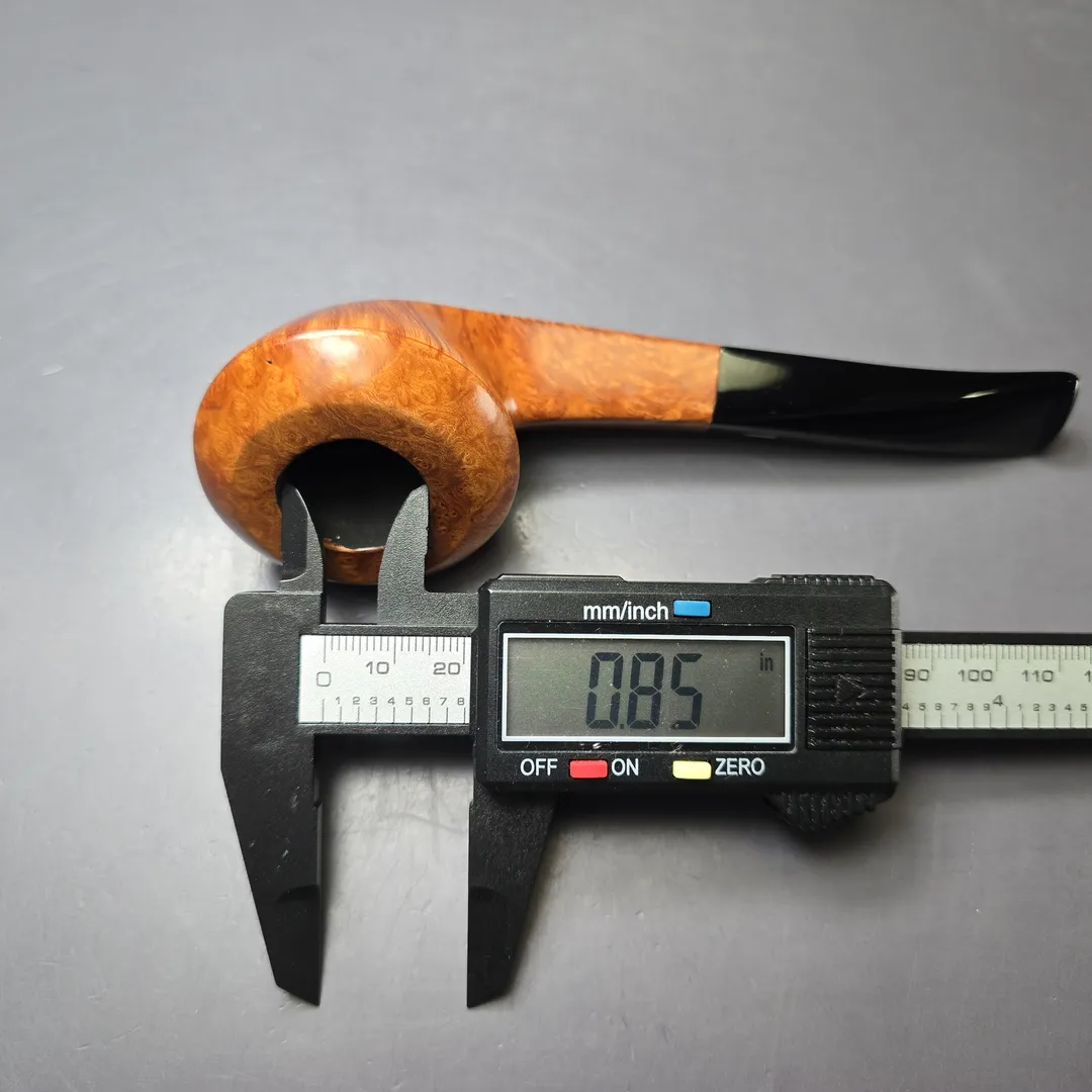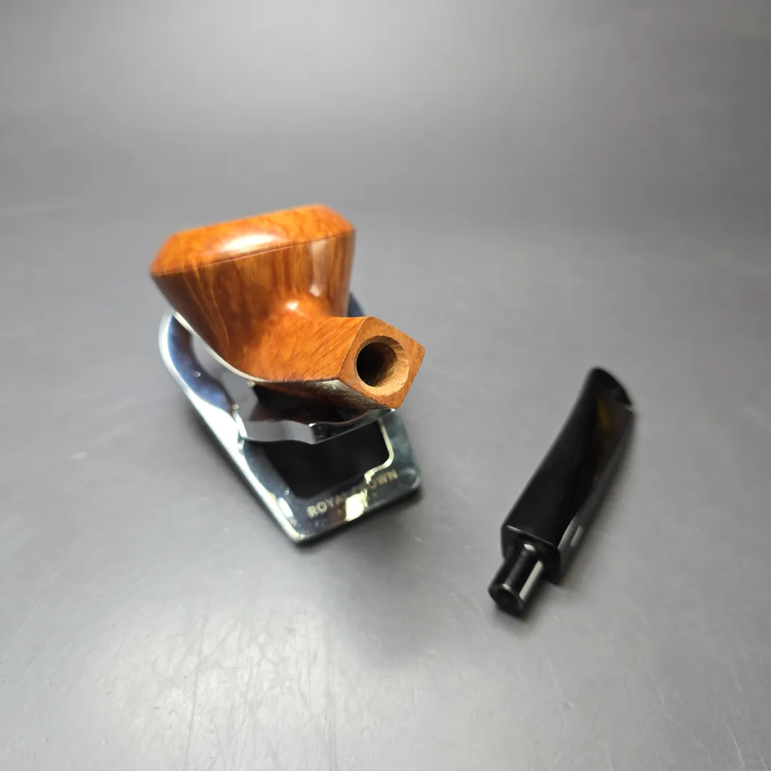 The condition is very good. Minor inner rim darkening and chamber slightly over-reamed at the lip. The pipe comes with its original box and sleeve.