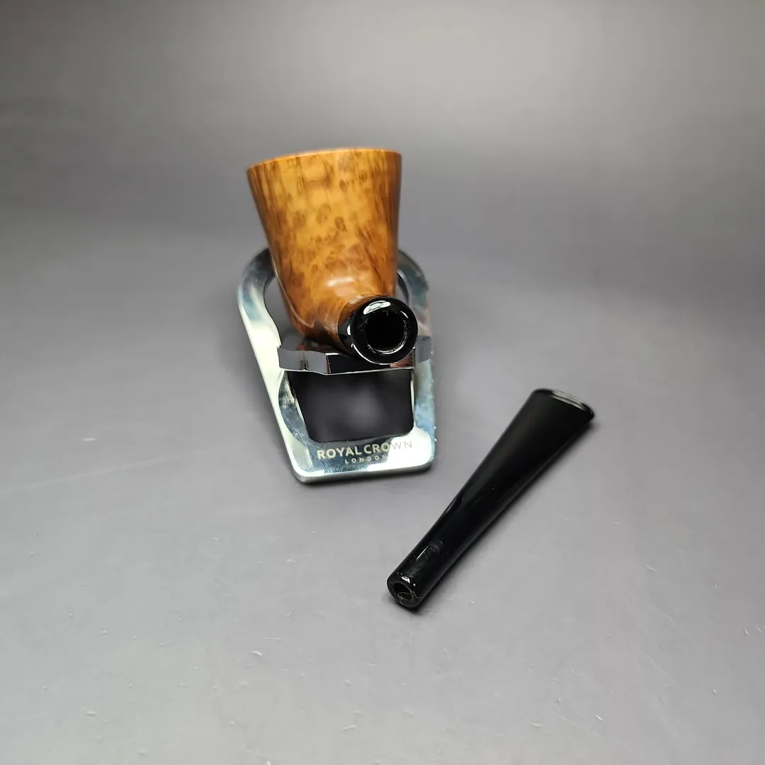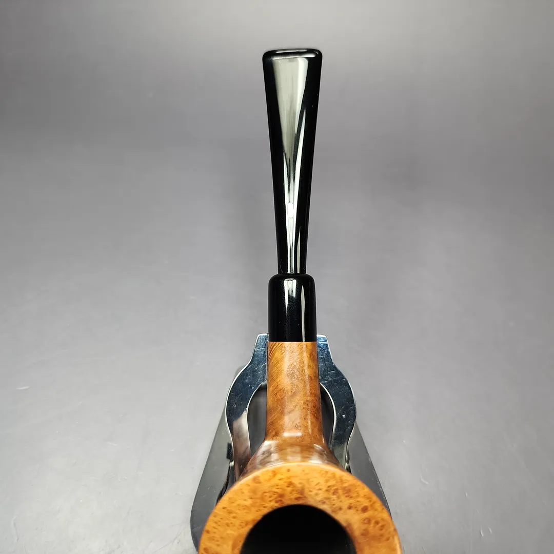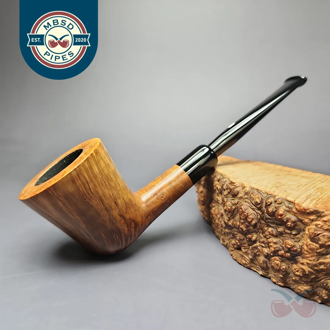 I can see why this particular Castello, dressed in the workshop’s signature blonde “Castello” finish, attained its full four out of four “K”s. The bowl features some superb straight grain, which flares outward in a great synergy with the Dublin form it’s been rendered in. It’s a wonderfully light piece, too, with a Lucite army mount and stem making for an easy clenching, great looking pipe.