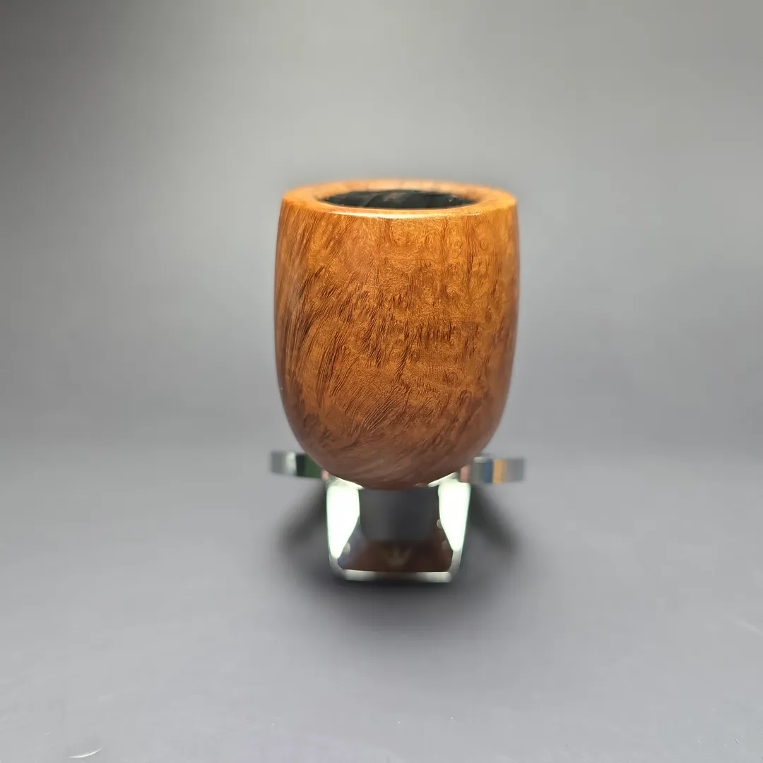 The “Castello” is the Castello’s signature (in more ways than one) rendition of the light, blonde finish that has come to define high-grade Italian pipes. And, as with Castello’s other smooth finishes, each is graded by the number of “k”s stamped on the bowl, referencing Carlo Scotti’s early partner, the late Franco Coppo, and his nickname, “Kino.” This one is a full four-out-of-four “k” grade “Castello,” owing to its flawless mix of bird’s-eye and straight grain patterns. From the looks of it, the pipe is rendered in the Castello workshop’s shape 31, an interesting hybrid of the Canadian, Zulu, and cutty shapes.