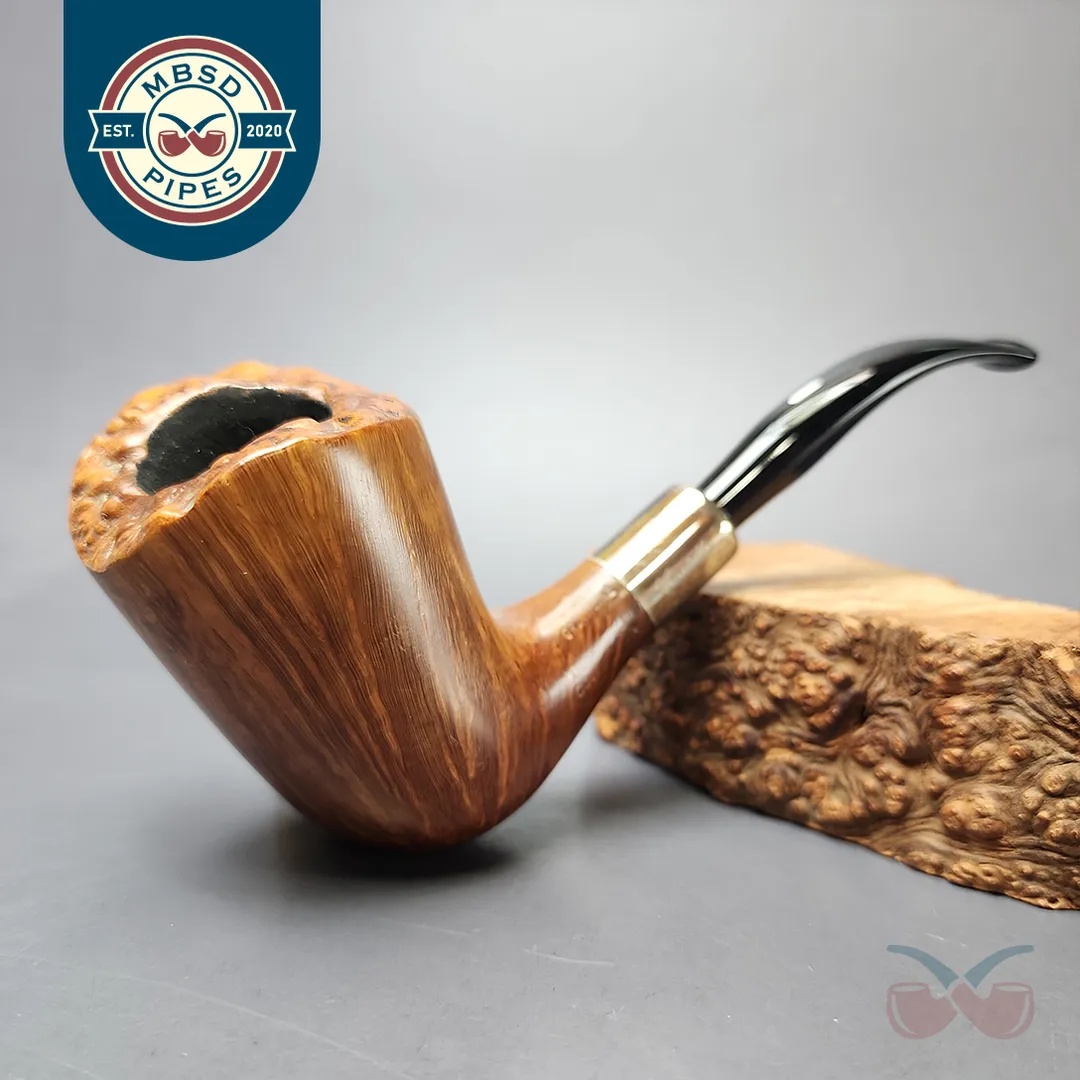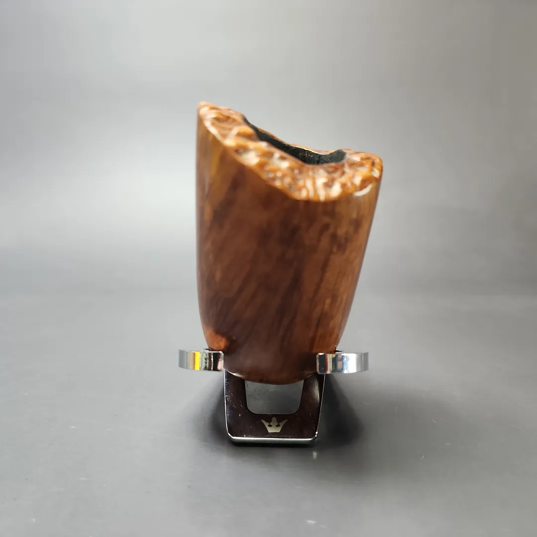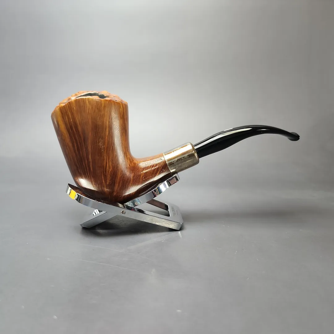 This particular Castello is an example of the latter, and a rather distinguished one at that. As a Collection-grade Great Line, it sits near the top of Castello’s output, distinguished by its superior straight grain and very light, natural finish. But it also has something quite uncommon on Castello pipes, that being an ornate, sterling silver floc, or army mount.