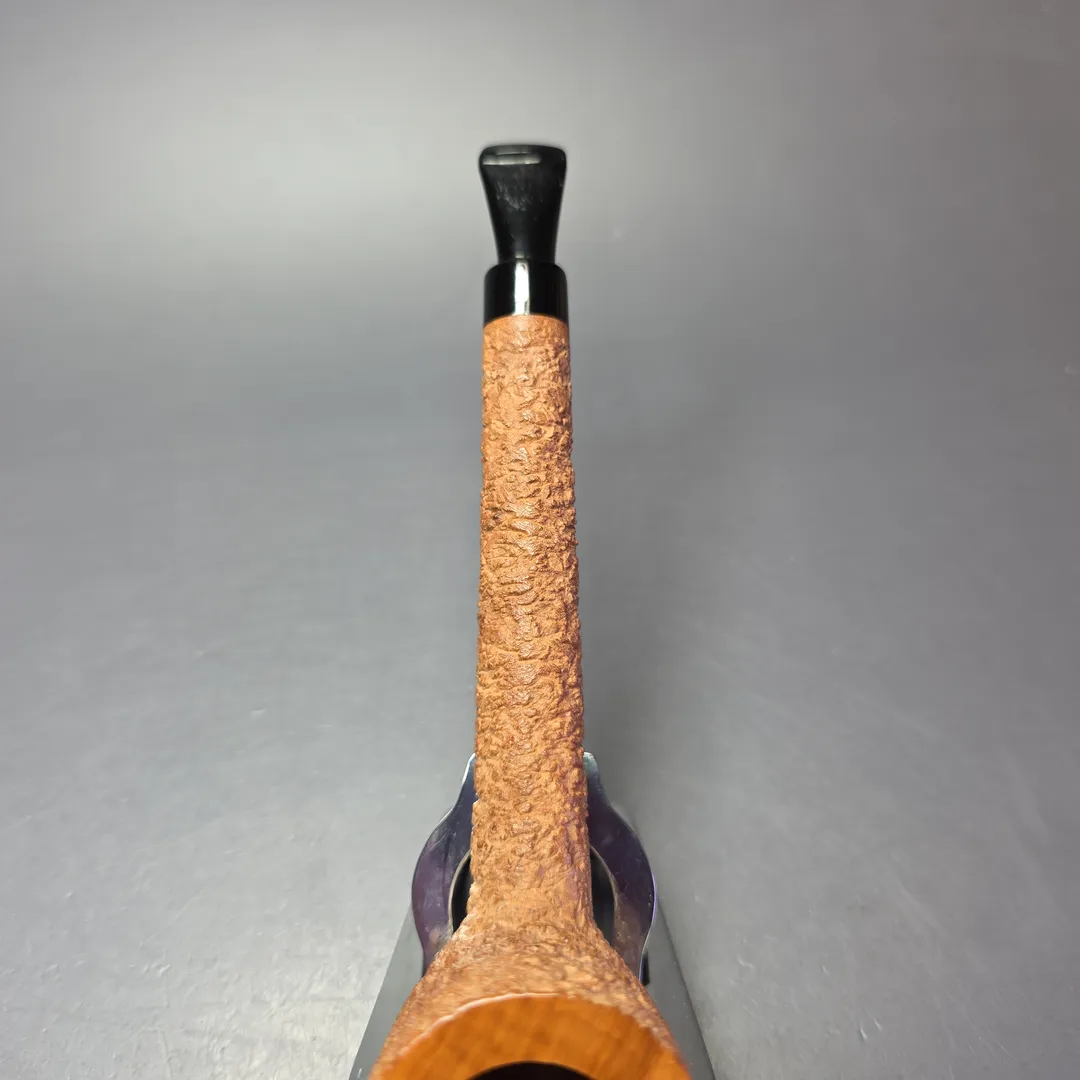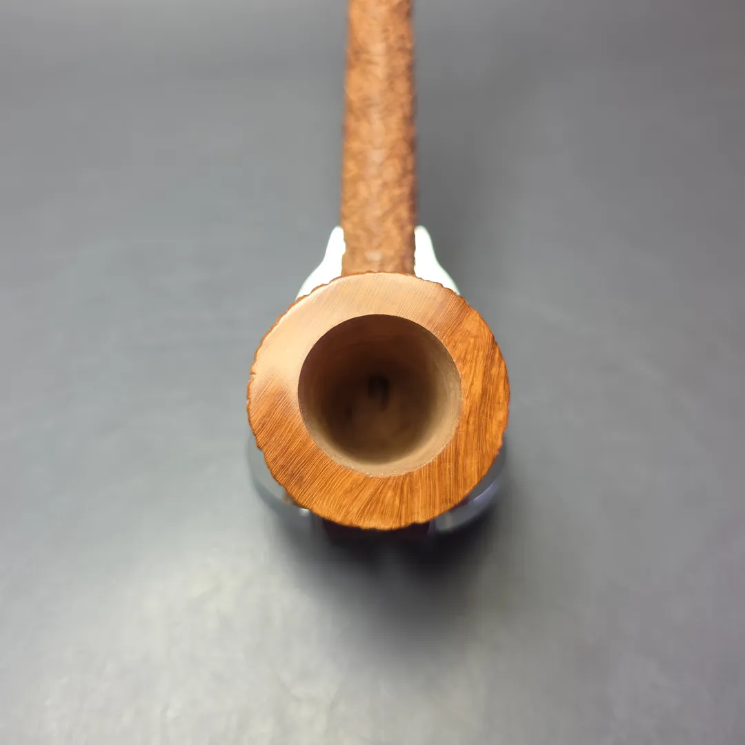 Like Dunhill’s Tanshell and Savinelli’s Punto Oro Corallo, Castello’s Natural Vergin Castello is a rare series of pipes distinguished by their superior briar and a very minimal, natural stain. As a result, over time and as they’re smoked, these pipes develop a warm, brown-sugar patina, almost like meerschaum. The key difference with the Castello version is that it features the same basic rustication as the workshop’s renowned Sea Rock Briar and Old Sea Rock finishes, sans their respective stains. Complementing that very Italian approach to finishing, this one takes the form of another minor Italian tradition—that of the extra long, long shank rendition. In this instance, it’s an especially long Lovat, one which should look even more striking once its patina starts to settle in.