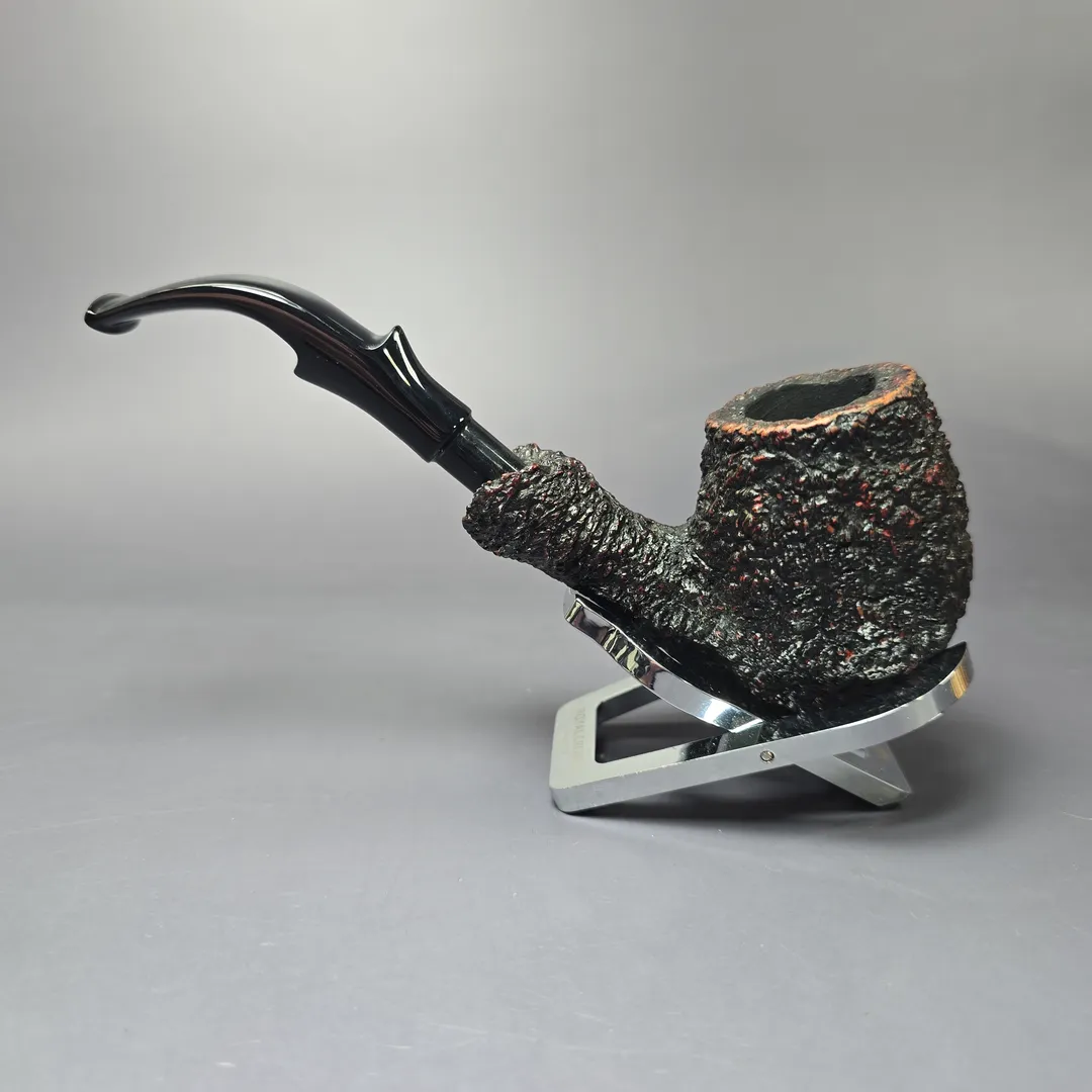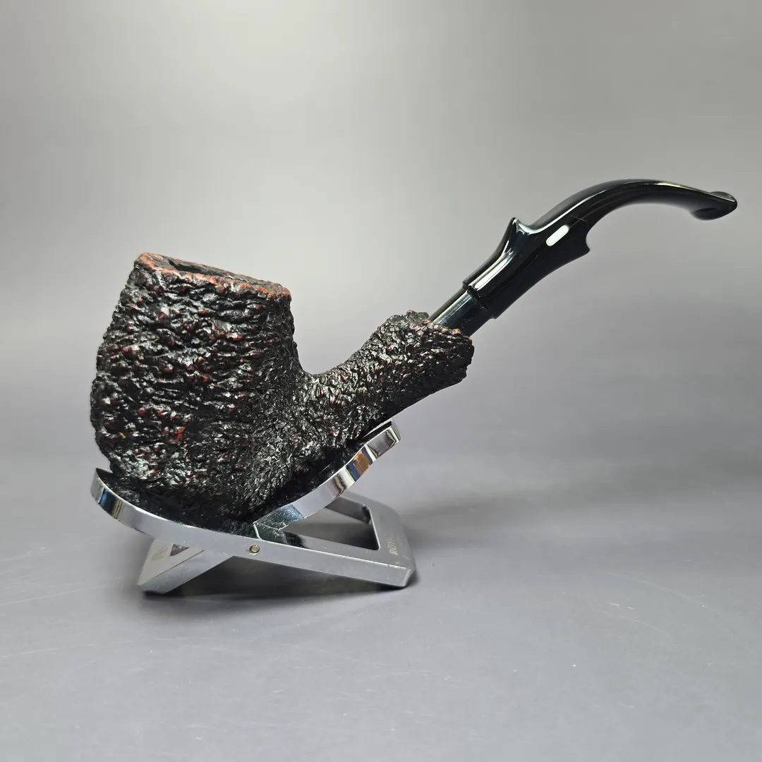 The “293” is one of Castello’s most unique shapes. Part bent egg, part Oom Paul, and part Danish freehand, it is one of the few Castello designs to have its own colloquial name: the pescatoraPescatora is Italian for “fisherman,” which makes quite a bit of sense given how the bowl’s curvature and the flaring of the stem resemble a kind of fish hook. This one is a rather large rendition, and is furthermore dressed in a particularly craggy example of Castello’s signature pebble-dash rustication, the Sea Rock Briar. If you’ve ever wondered why so many Italian pipes are rusticated in a similar fashion, Castello is bound to bear a good part of the responsibility, having crafted high-grade Italian pipes with just such a finish since the late 1940s.