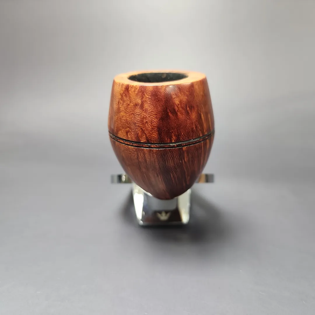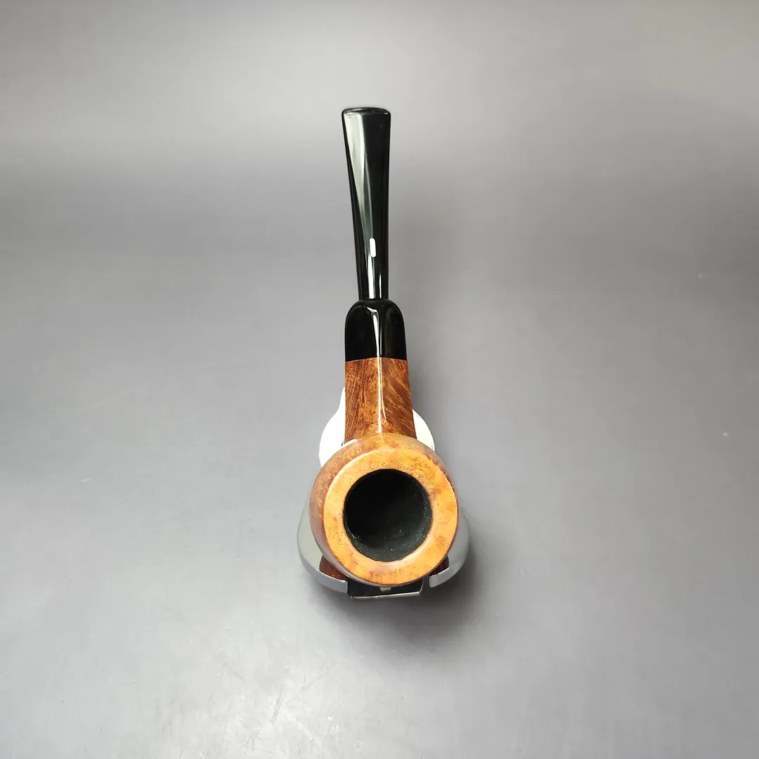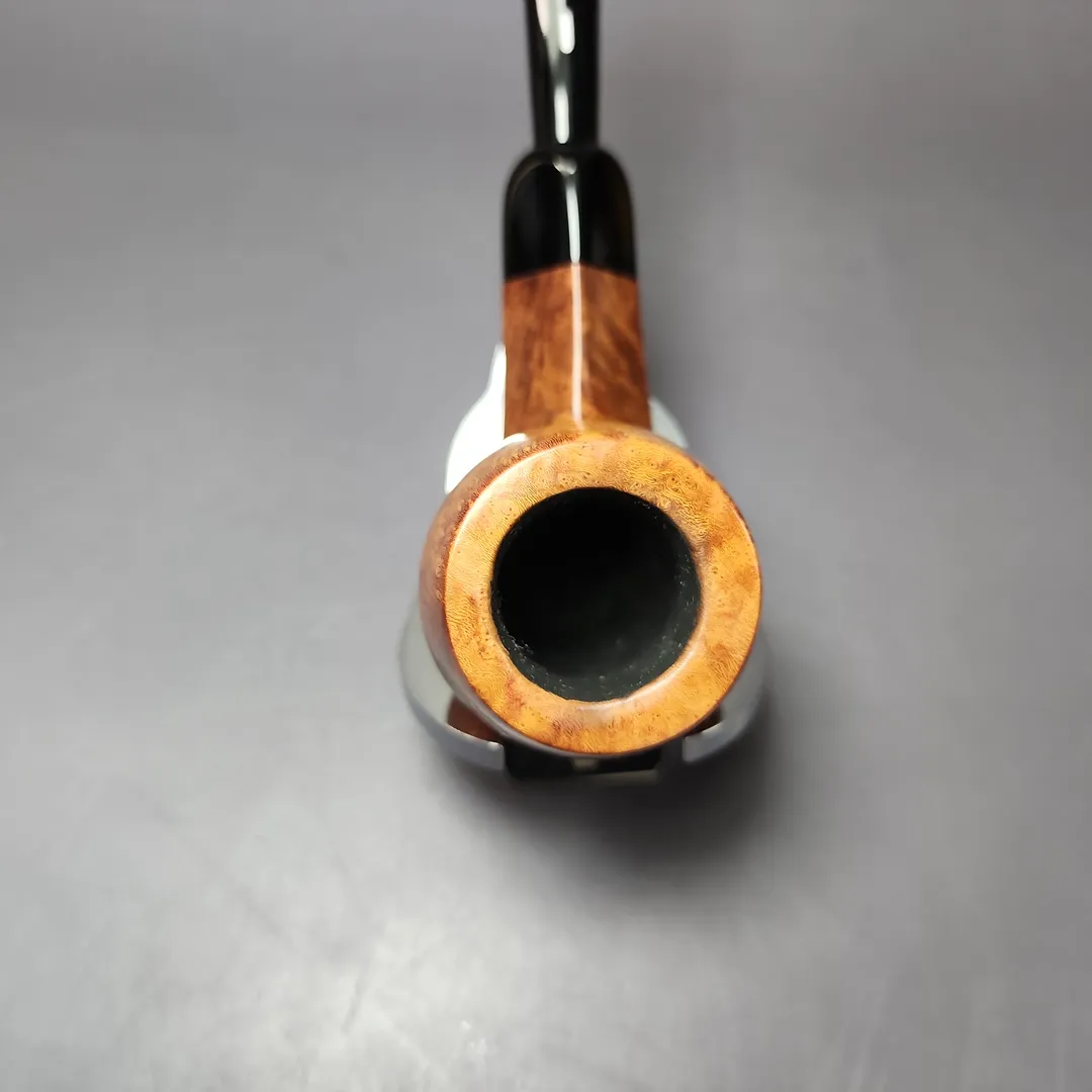 While a relatively modern production this particular Castello is a classic within the workshop’s portfolio. That’s because it is the same Lucite mounted bulldog that Carlo Scotti’s make has crafted since its earliest years, albeit not as commonly as some of its other shapes. Originally referred to as the 56F (“F,” or “floc,” being an Italian shorthand for tenon-less push fitments, with army mounts being the most frequent example) it is today simply known as the shape 56, with saddle, taper, and mounted options. It is the latter, however, that is most distinctive, swapping out the more typical silver or gold for a jet-black junction to a jet-black stem. This one comes from Castello’s Trademark line, which is quite fitting all things considered, having earned a full four out of a possible four “k”s within that grade bracket.