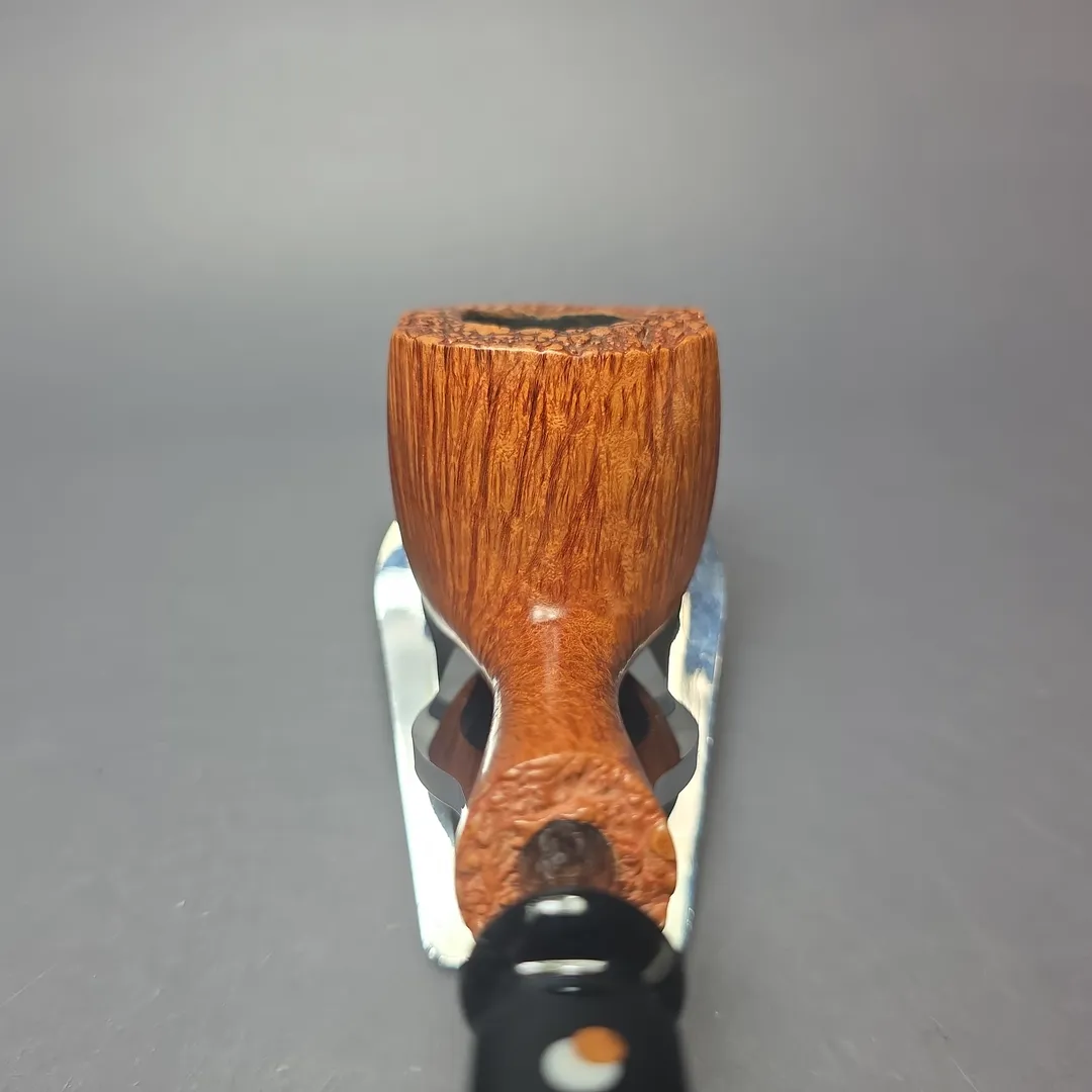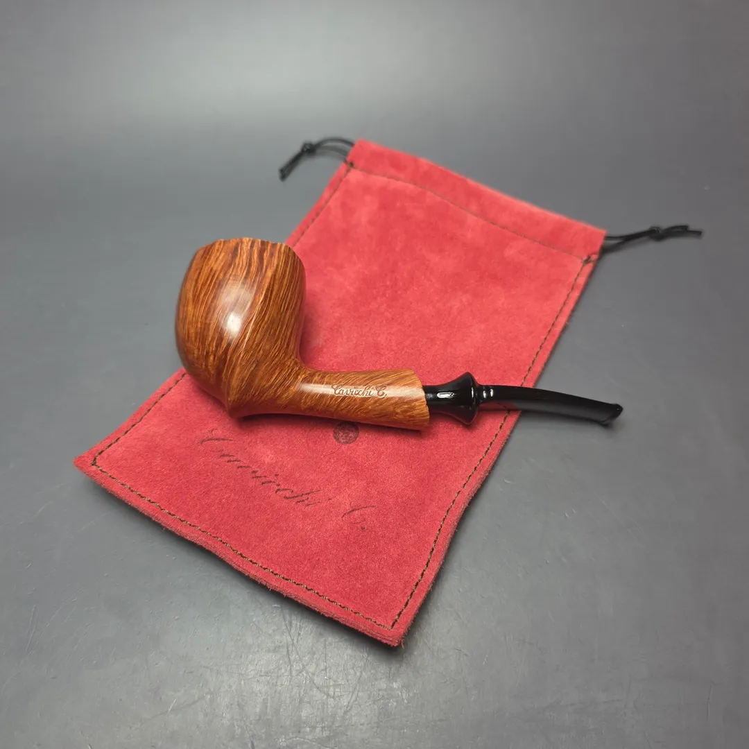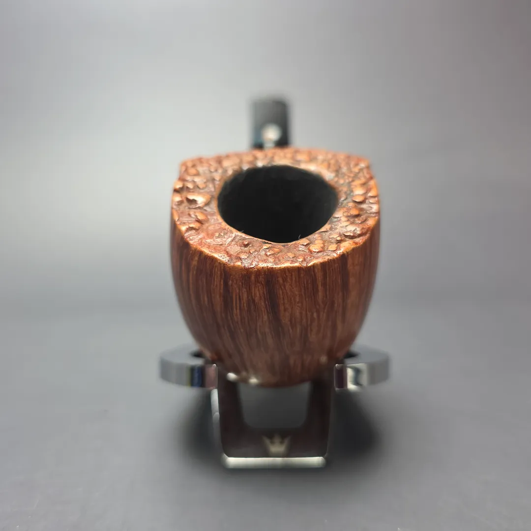 I’ve said it before and I’ll say it again: not only does Claudio Cavicchi produce some of the finest pipes on the market today, but he is also once of the most versatile pipe makers alive. He can turn an Anglo-French large billiard with grain comparable to the highest grades on the Dunhill Dead Root line, an Italian-style Dublin leagues ahead of most of his compatriots, or indeed a Danish horn that one might mistake for the work of Jess Chonowitsch. In the case of this one, it’s a Danish-inspired shape, though a slightly more obscure one, especially for an Italian artisan. Though it bears resemblances to the cobra, it is more accurately termed a Sphinx, owing to its resemblance to the ancient Egyptian deity and surviving sculptures of such. One way to think about it is as a cobra in reverse, with the hallmark “hood” at either side of the bowl furling forward instead of back. It’s also a shape that is arguably better suited to a focus on straight grain patterns, rather than the great plane of bird’s-eye typical of high-end cobra renditions—which Cavicchi has, of course, brought out in a sublime manner in his rather rustic, plateaux-tipped take on the former.