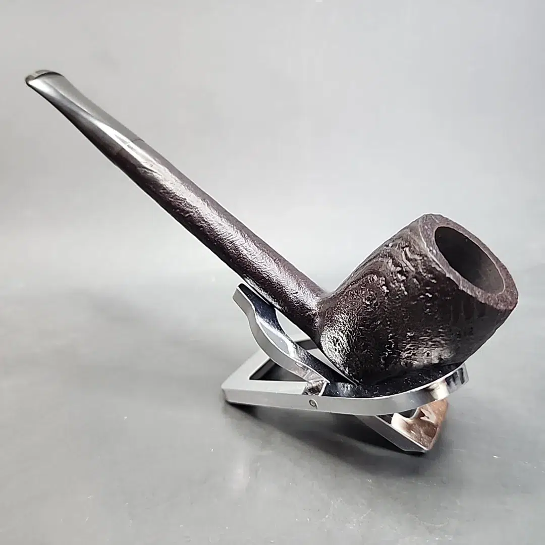 Chacom’s Antique line was one of pure and elegant simplicity. The bowls were sandblasted and stained a very dark, near-black, umber (i.e., reddish brown) and the stems were jet-black vulcanite. It’s a design combination that has endured for just about as long as sandblasted pipes have existed, and there’s a good reason for that. It just works. One of the added benefits, however, of Chacom being such a powerhouse pipe company in the birthplace of briar – Saint-Claude, France – is that they have an unrivaled supply of well-seasoned briar and stummels. So, you can guarantee that a pipe like this not only looks great, but it will also smoke fantastically well. I was very close to keeping this one, as I am partial to Canadian shapes, but then again, I do have about a dozen Canadians already, in addition to all the other pipes…
