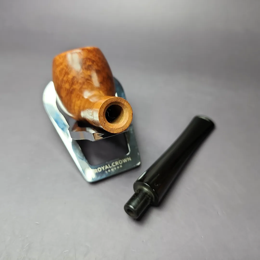 With a name that evokes the mythical horse of Medieval French culture, the Bayard is a line that, like so many others over Chacom’s long history, has gone through a number of iterations. The contemporary Bayard is a very reserved design, with a dark, reddish-brown stain and an acrylic stem. By contrast, this earlier iteration of the Bayard is far more lively, with a virgin stain highlighting its swirling grain patterns, and a black ebonite stem that provides for a stronger contrast with the bowl’s finish. Each has its merits, though this one, of course, is no longer in production.