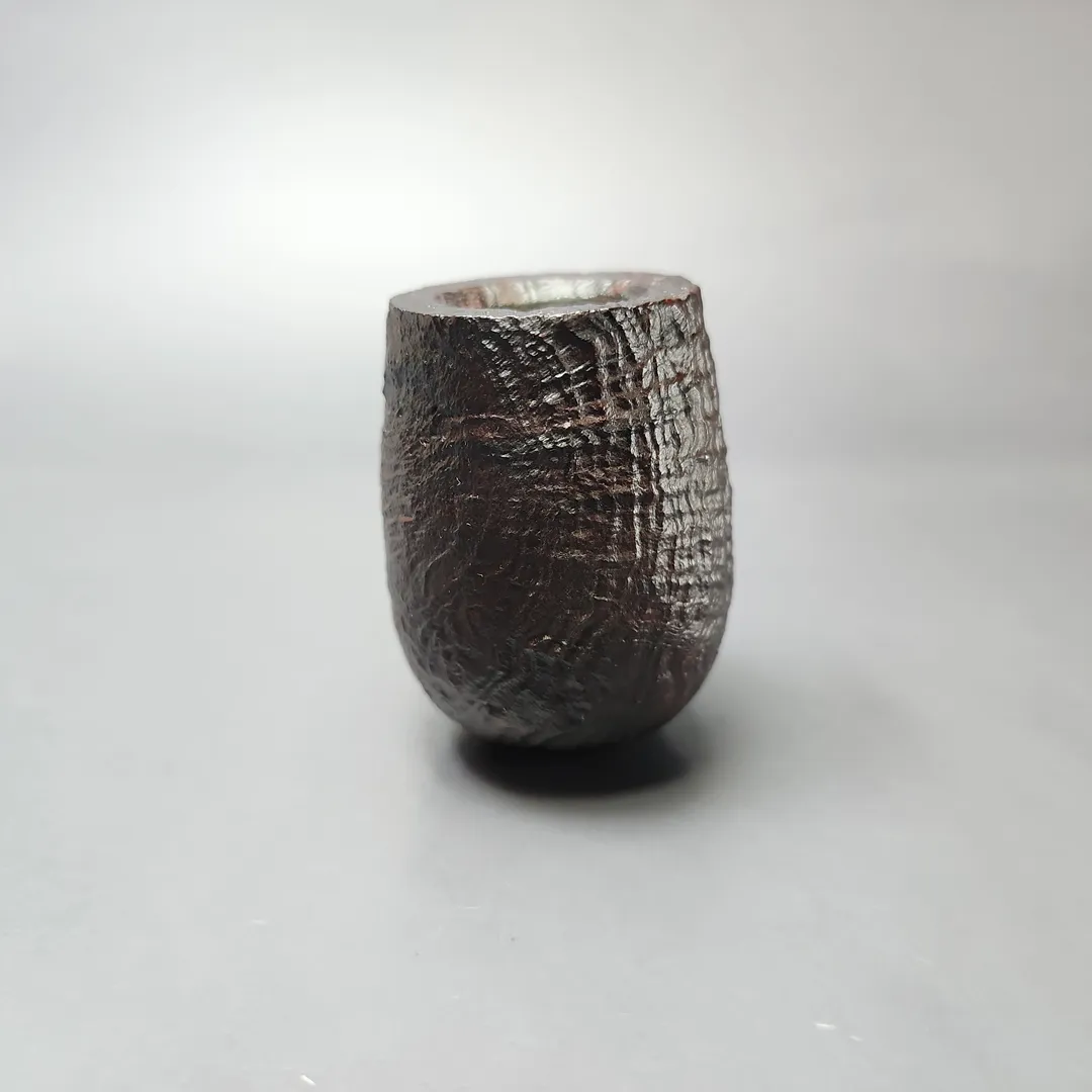 Named for the tree from which briar is harvested (Erica arborea) Chacom’s Erica line is one which, in the company’s own words, ” combines elegance and practicality.” Bringing together deep chambers well suited for long, contemplative smokes, with reserved finishes, one might call it the most devoted of Chacom’s line to the harmony of form and function. This one wears the Erica line’s sandblast finish, dressed in a dark burgundy, slight contrast stain that’s offset by two rings of polished briar inlaid in the pipe’s acrylic stem.