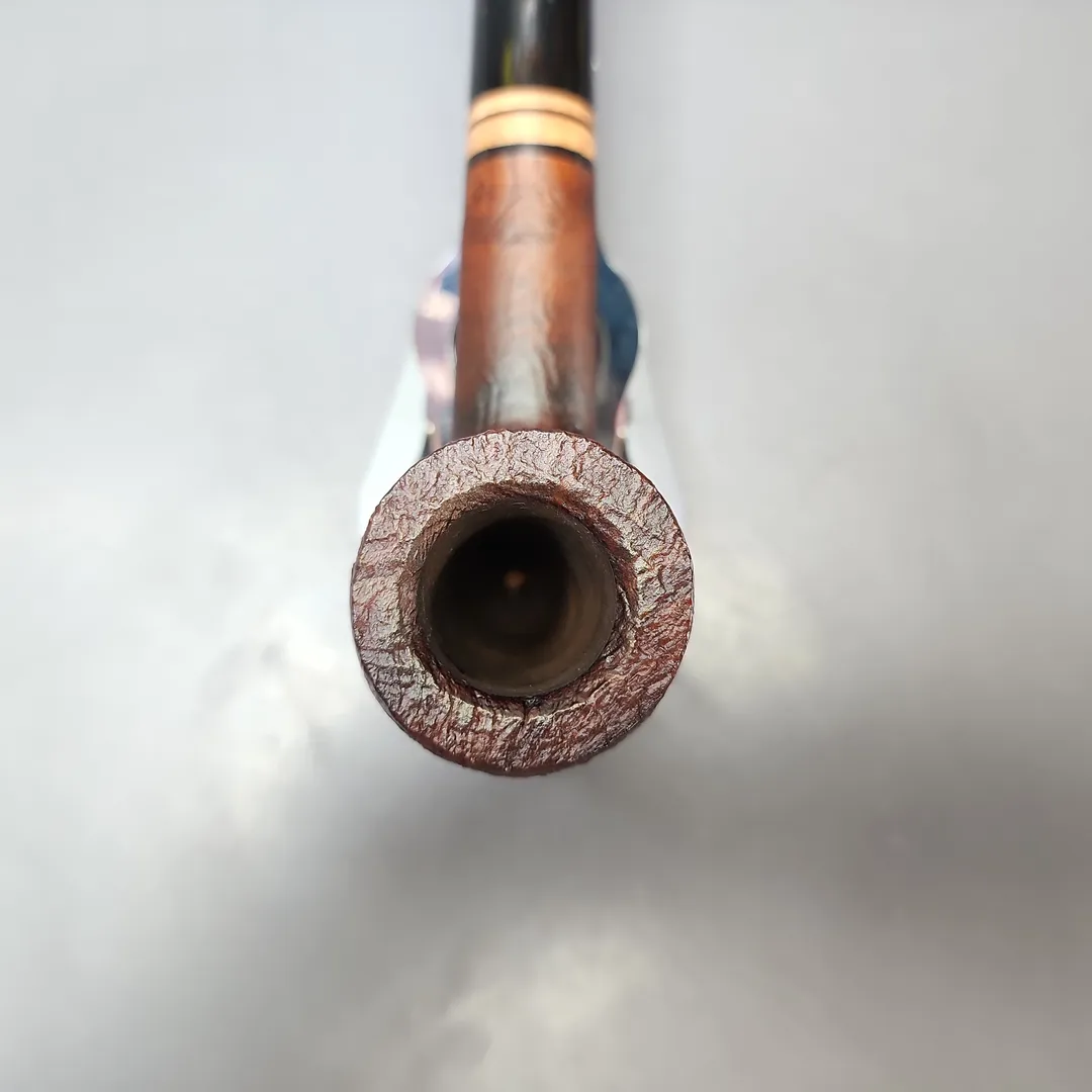 This pipe is completely unsmoked, with an original (slightly flaked) bowl coating. It comes with its original box.