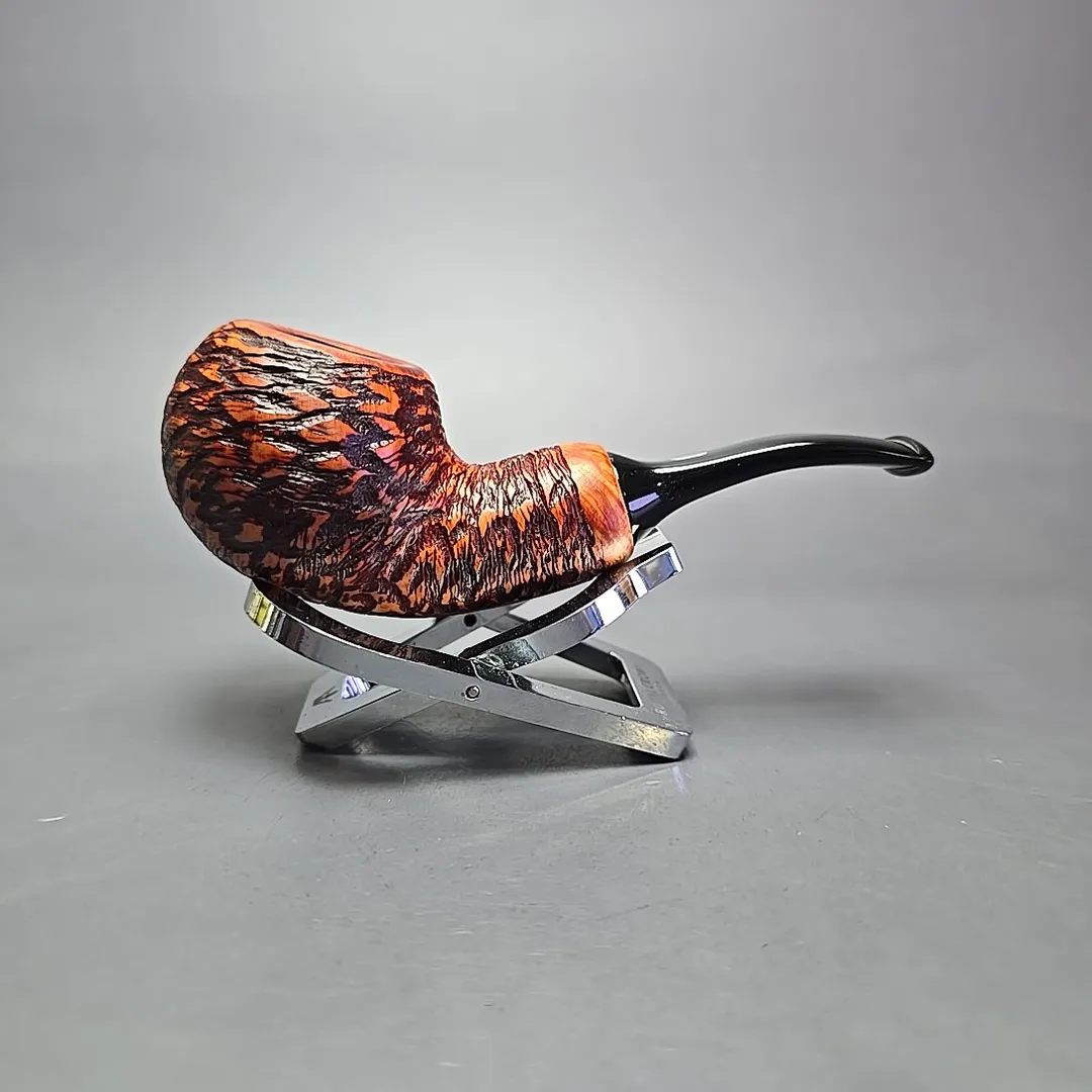Chacom Reverse Calabash Brown Rusticated Apple Estate Briar Pipe, Unsmoked