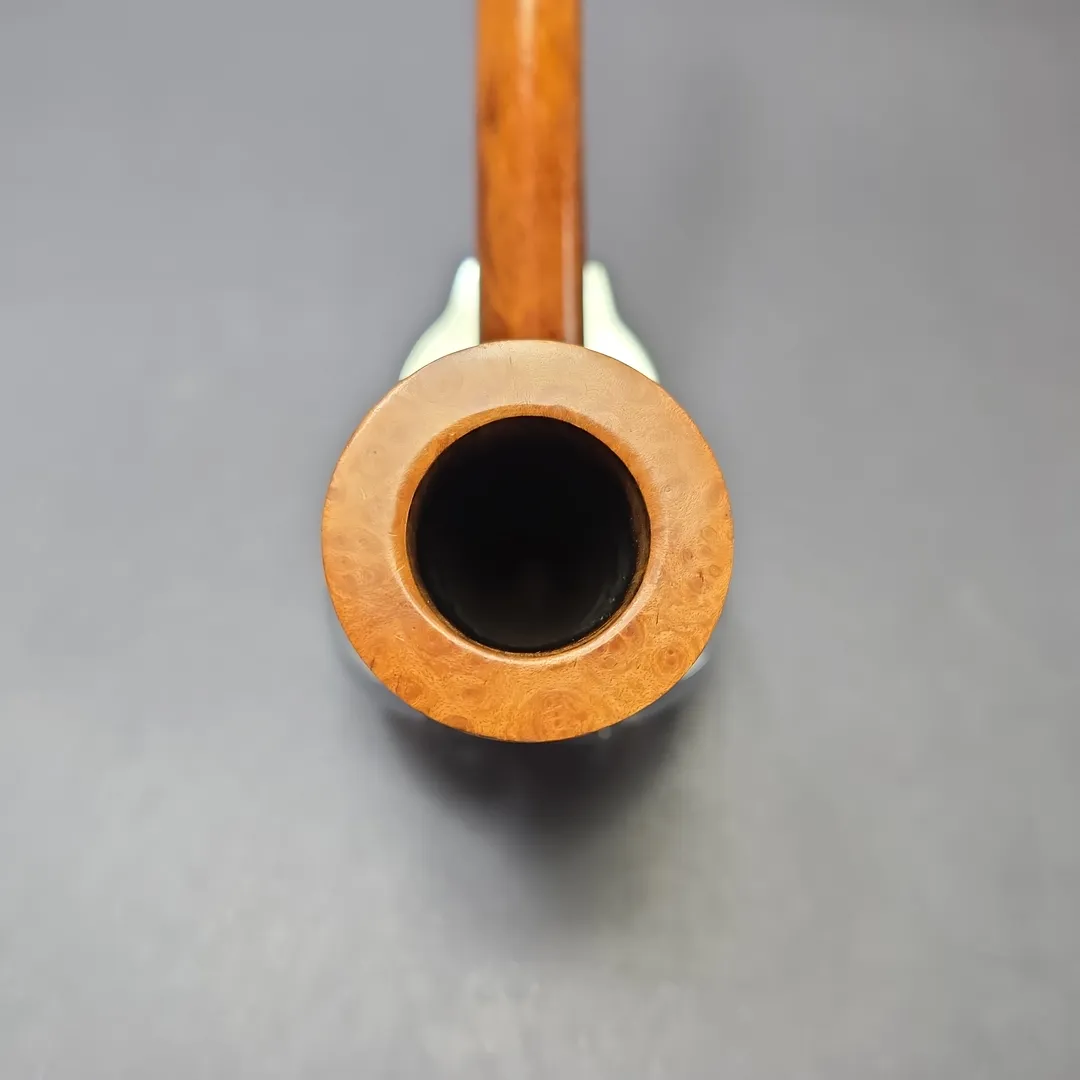 This particular Charatan is an example of the aforementioned Selected Extra Large grade. Based on the nomenclature, it comes from what is often referred to as the “first Lane era,” that being the years between approximately 1961 and 1965, when F. Charatan & Son was propelled into international acclaim, especially for freehand pipes such as this one. How Charatan was able to achieve this was due to a confluence of factors; freehand pipes had entered the mainstream, though the precedents set specifically by Danish freehands meant that pipe makers from elsewhere in the world had to put in a lot of work to keep up; luckily, Charatan had a roster of supremely talented freehand pipe makers, many of them being former apprentices to Reuben Charatan, an early champion of straight grain pipes with notoriously high standards for what qualified as one; and, of course, Herman Lane’s sheer salesmanship, especially when it came to the Charatan brand, was near-unrivaled. Each of these things came together in the creation of some of the finest pipes of their day, and a world that rightly recognized this.