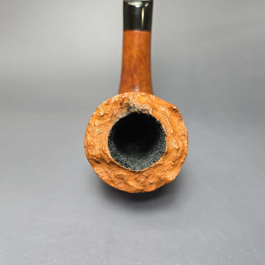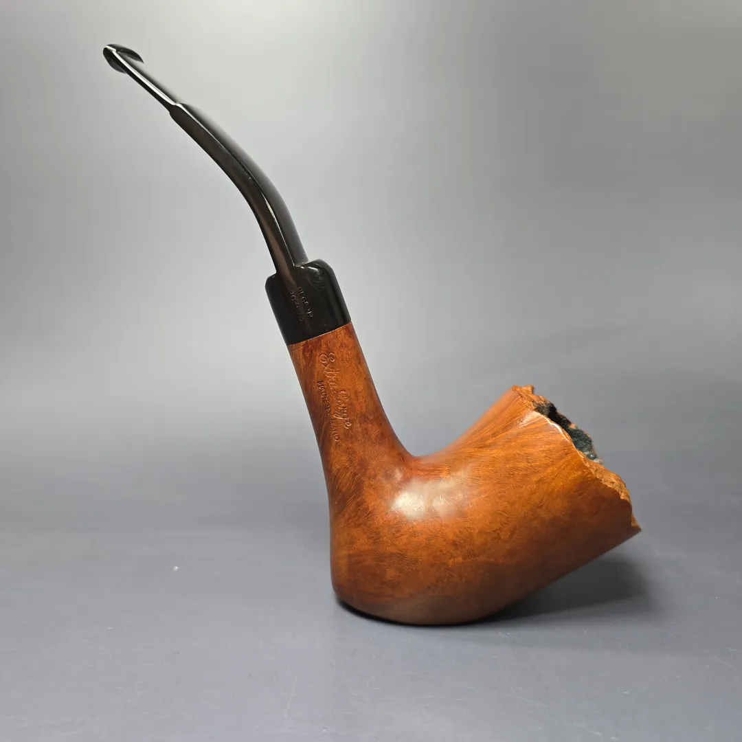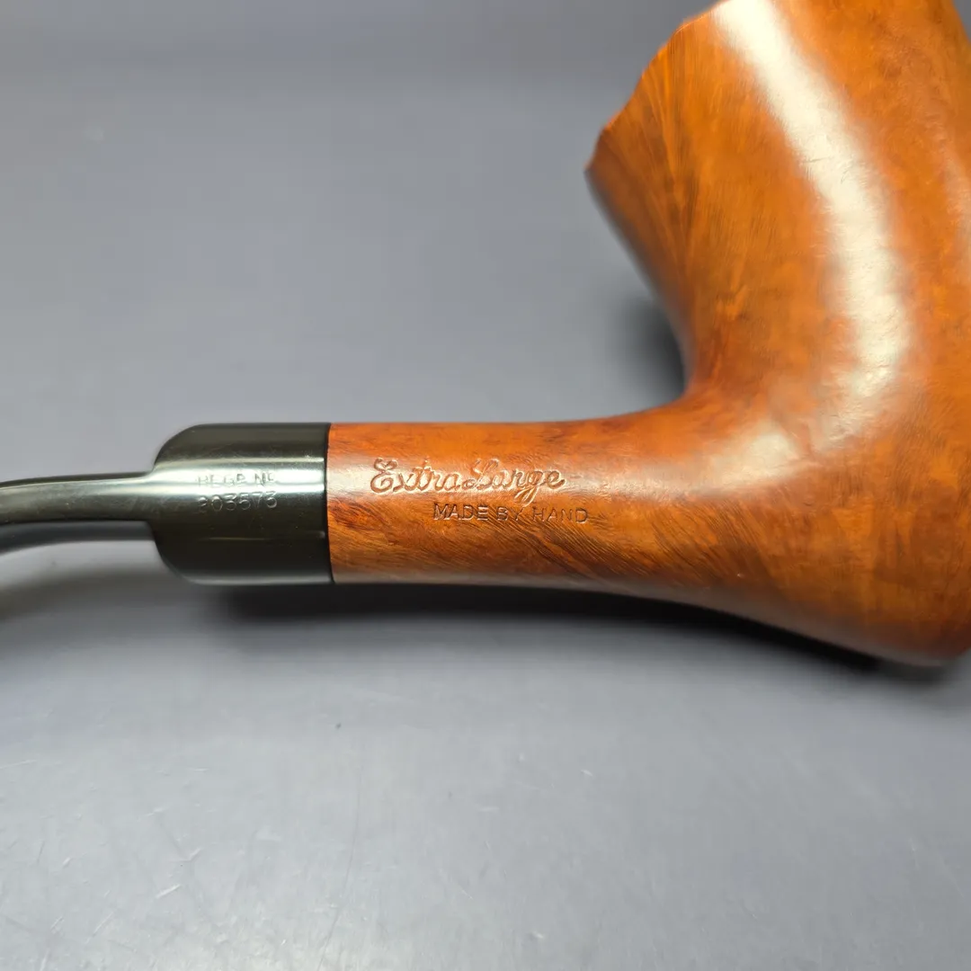 While Charatan remains famous for its straight grain pipes, there was still a place within the make’s grading schemes for other kinds of beautiful briar patterns. The Special was one such grade which, during the legendary Lane era (to which this pipe belongs), boasted “Perfection in graining in a natural finish.” Sometimes this was superior cross-grain, sometimes bird’s-eye, and sometimes, as in the case of this one, a beautiful bouquet of each. Based on the nomenclature, this Extra Large example to what is sometimes termed the “first Lane era”—i.e., the years immediately following the passing of Reuben Charatan, during which Herman Lane was at the company’s helm. These were also the years that saw Charatan’s freehand workshop ascend to the heights it is remembered for. In other words, it was pipes like this one that proved to the world just how Special Charatan was.