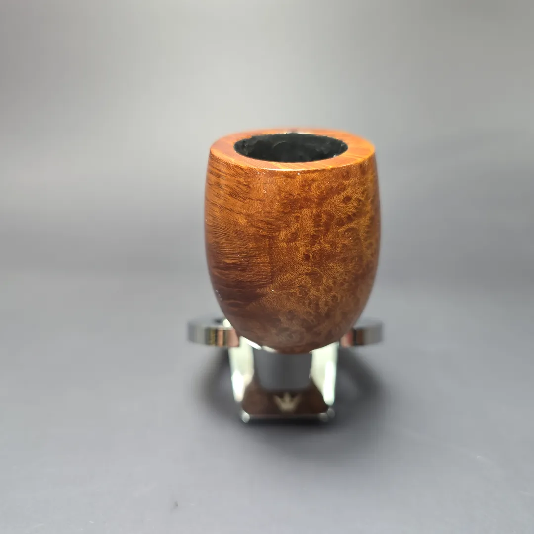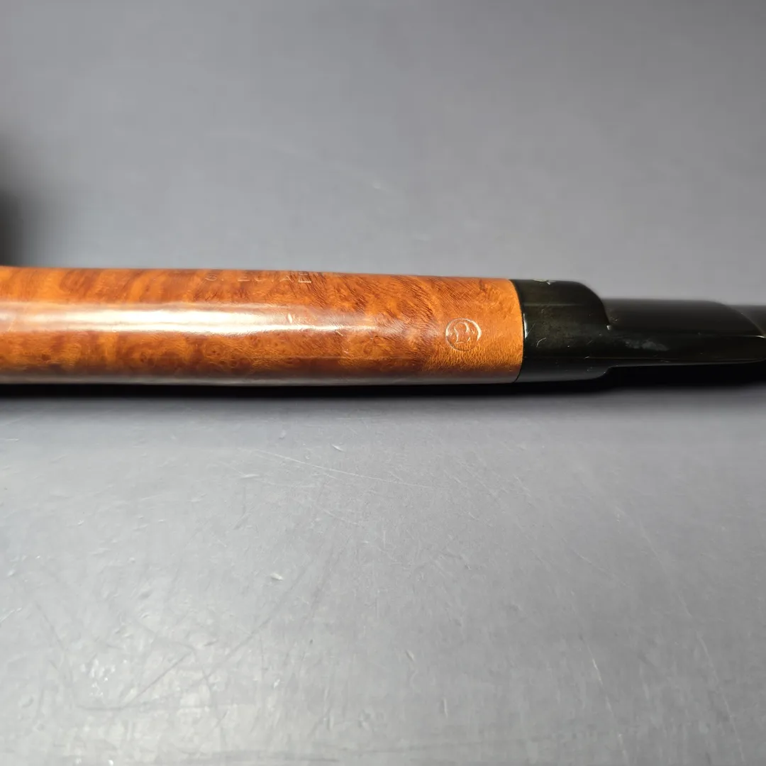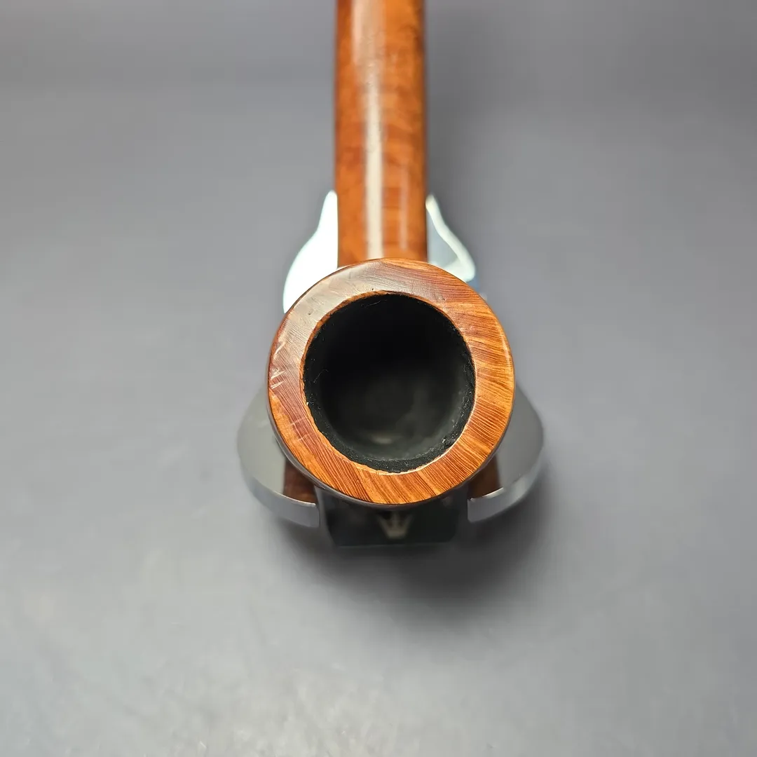 While Charatan remains famous for its straight grain pipes, there was still a place within the make’s grading schemes for other kinds of beautiful briar patterns. The Special was one such grade which, during the legendary Lane era (to which this pipe belongs), boasted “Perfection in graining in a natural finish.” Sometimes this was superior cross-grain, other times, as in the case of this one, brilliant bird’s-eye could secure a pipe a place among the Specials. This Special takes the form of a classic lumberman shape, with Herman Lane’s proprietary Double Comfort bit.