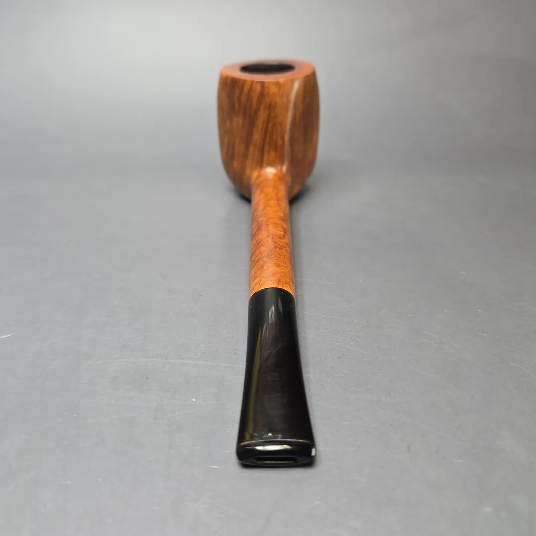 This particular Charatan freehand appears to be from the transitional period mentioned, taking the form of a paneled, poker-Canadian hybrid that is, all things considered, not entirely out of the ordinary. According to Barnes, it was Reuben, Dan Tennison, and Barry Jones who turned these pipes, for which the “FH” stamp was introduced as an early designation. Given that this pipe bears the “FH” but no “MADE BY HAND” nomenclature, and given that it features a tapered stem, I would estimate this to have been made during the late 1950s. While the pipe does also bear the Lane Ltd. “L” logo, Charatan pipes that were imported into the United States also featured this from 1955 onward, as Lane was the sole American distributor, even during the last years of the Reuben era. The pipe is a Selected grade which, if my dating is correct, would be just shy of the top of Charatan’s grading system (represented by the Supremes) during this time.