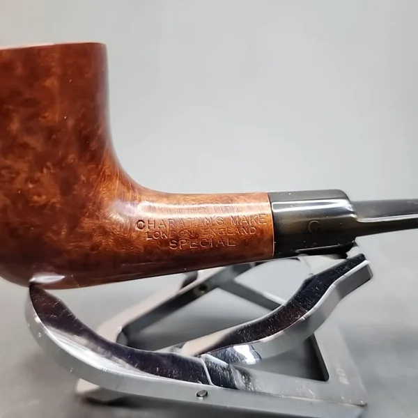As Charatan has been making pipes near-continuously for over a century, it is to be expected that the company’s ownership changed hands several times, as has been the case with many British pipe brands. This particular Charatan is from a period that many pipe smokers consider to have been its best, that being between the mid-1950s and early 1980s. This ‘Special’ grade Dublin is an unusually lightweight specimen from that era, and has some lovely grain, deliberately emphasized by its light brown stain.