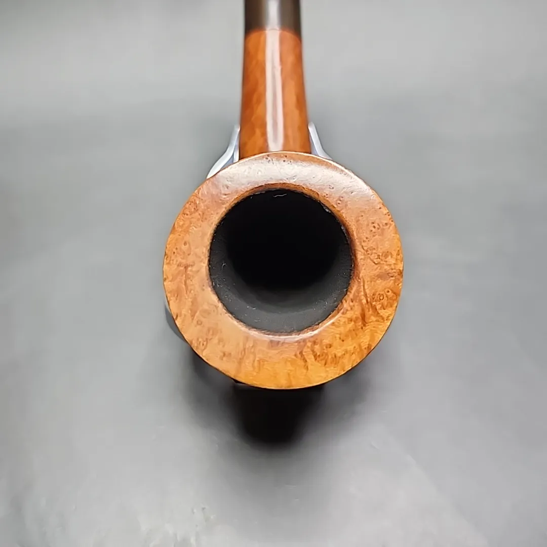 Collectors of Charatan pipes have their preferences for which ‘era’ of the make’s history was or is its best. From my experience, it is the Lane era (1961-77) that has the largest contingent of fans. And it’s hard to argue with those fans; the pipes made during Lane Ltd’s ownership of the make are excellent, in both their aesthetic and functional properties. This one belongs to what is known as the ‘first’ Lane era (1961-65). It’s a fairly conventional design, being a variation on the Dublin shape, though it is also a very distinct pipe. It has an unorthodox, strong forward cant, for example (which I suppose brings it closer to the lesser-known) Yachtsman, as well as one of Lane’s proprietary Double Comfort vulcanite stems. It also has fantastic grain, with straight grain patterns that have been worked so as to follow the bowl’s “leaning” figure.