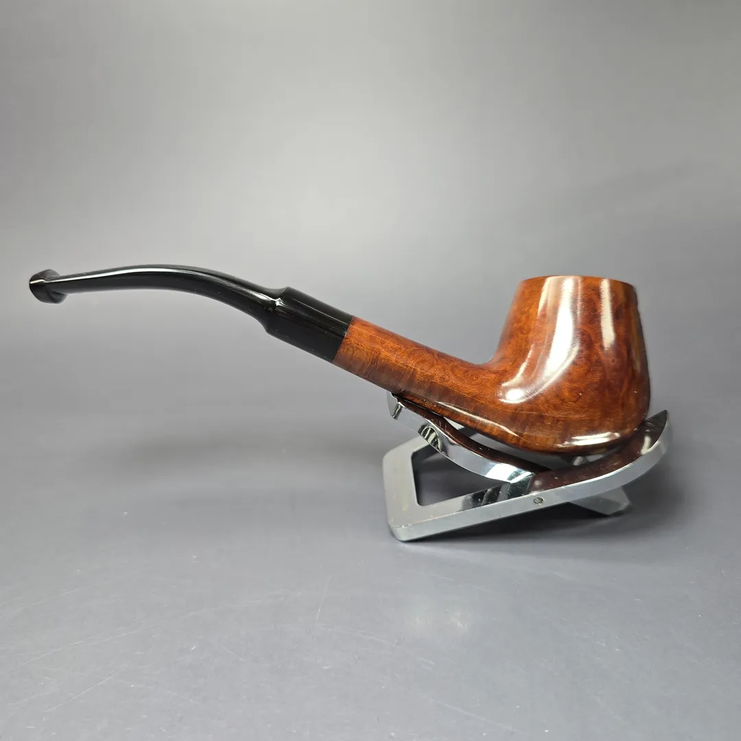 Owing to its mixing of traditional Anglo-French shapes with patches of very fine, partial rustication, it’s difficult to look at a Comoy’s Highgate and not be reminded of a very specific precedent: the Barling Freak, later known as the Quaint. Like the Freak/Quaint, the Highgate featured a kind of “chicken scratch” roughing of the briar, creating a unique look for each pipe finished in this manner, and one with plenty of character.