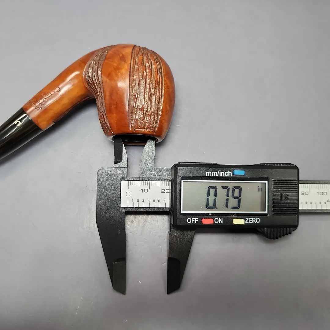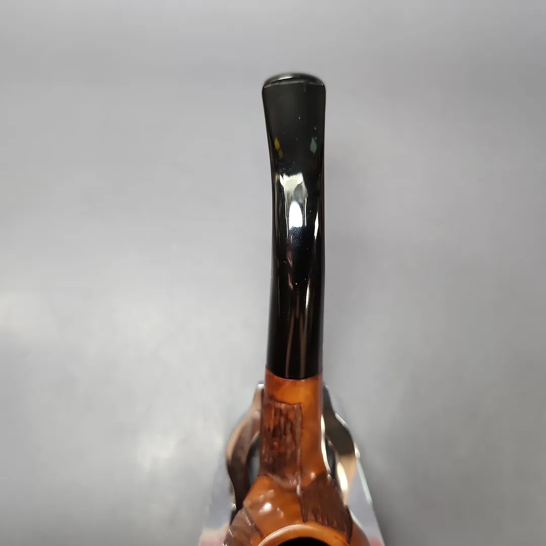 Owing to its mixing of traditional Anglo-French shapes with patches of very fine, partial rustication, it’s difficult to look at a Comoy’s Highgate and not be reminded of a very specific precedent: the Barling Freak, later known as the Quaint. Like the Freak/Quaint, the Highgate featured a kind of “chicken scratch” roughing of the briar, creating a unique look for each pipe finished in this manner, and one with plenty of character. As this one features the famous three-part C stem inlay, it will be a pre-1980s make, i.e., pre-Cadogan Investments merger, after which production of Comoy’s pipes was consolidated into the same London factories that Cadogan’s other brands were produced in.