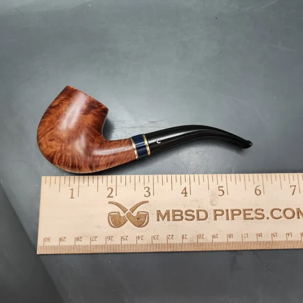 From what I can tell, Comoy’s “Spectrum” took its name from the color spectrum, as the pipes featured ferrules comprised of acrylic rings of various hues, sandwiched by two brass bands. These add a nice touch of color to the traditional shapes features in the line—in this instance, sapphire blue.