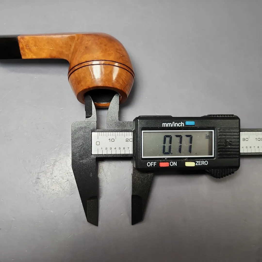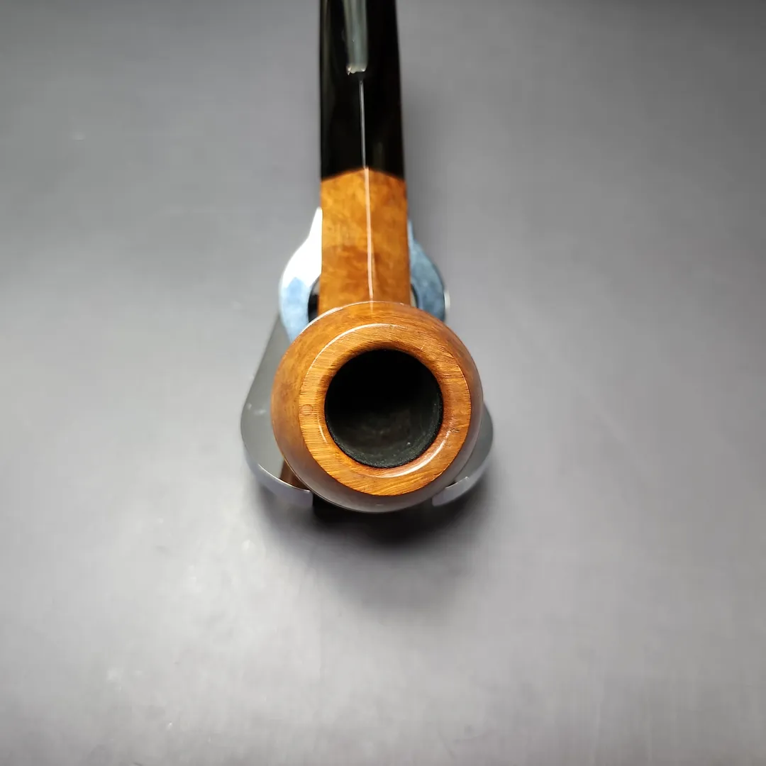 This pipe is also completely unsmoked, with an original bowl coating. The stem logo has worn off over time, and there are a couple of very small scratches on the bowl, though nothing major by any measure.