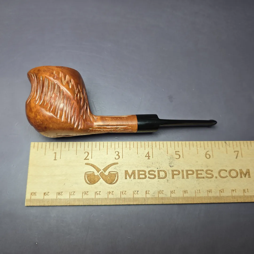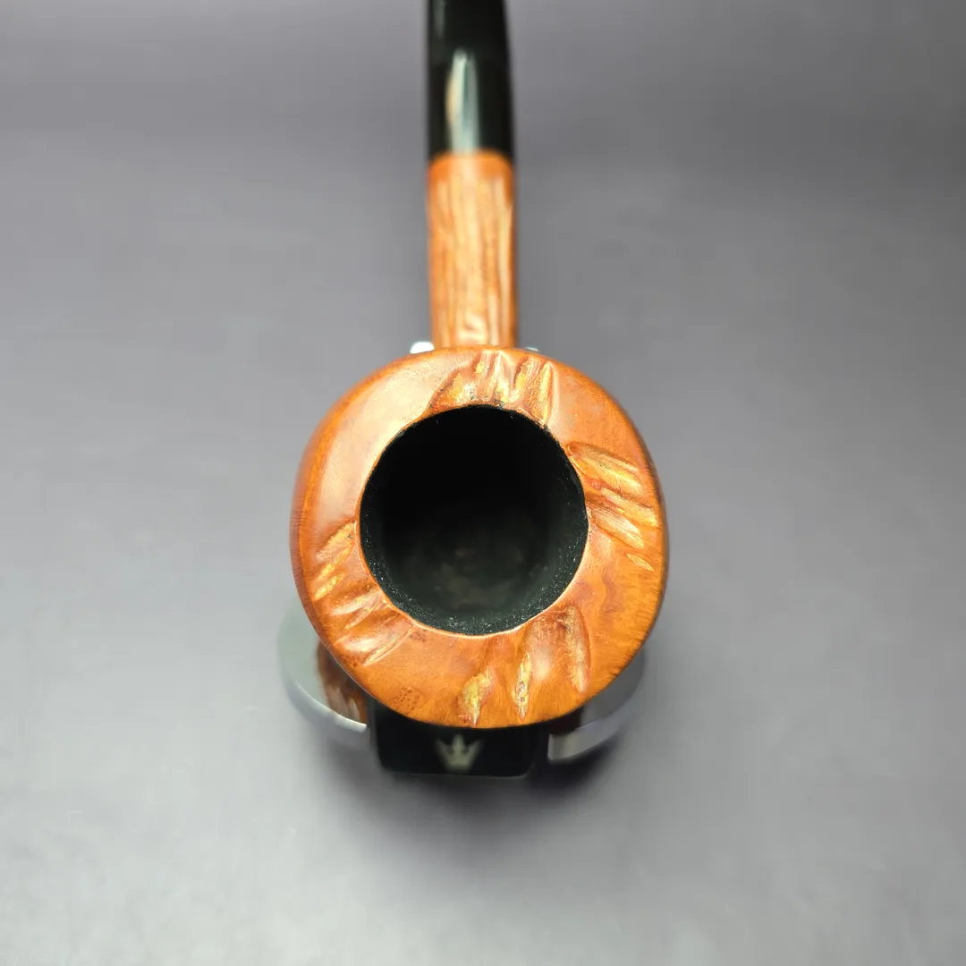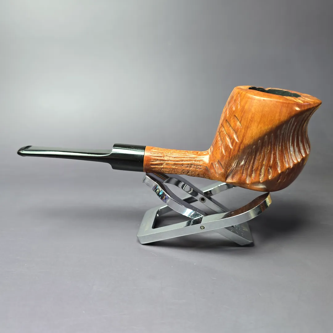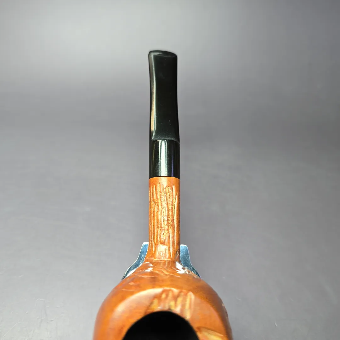 As much as it pains me to say, I wasn’t able to find much information about “Decade” pipes. The style of this one is a little reminiscent of Custom-Bilt, at least in terms of rustication, though it’s not quite the same as Tracy Mincer’s signature finish. It’s a sturdy briar, though, with good shaping as far as hand-feel goes, too.
