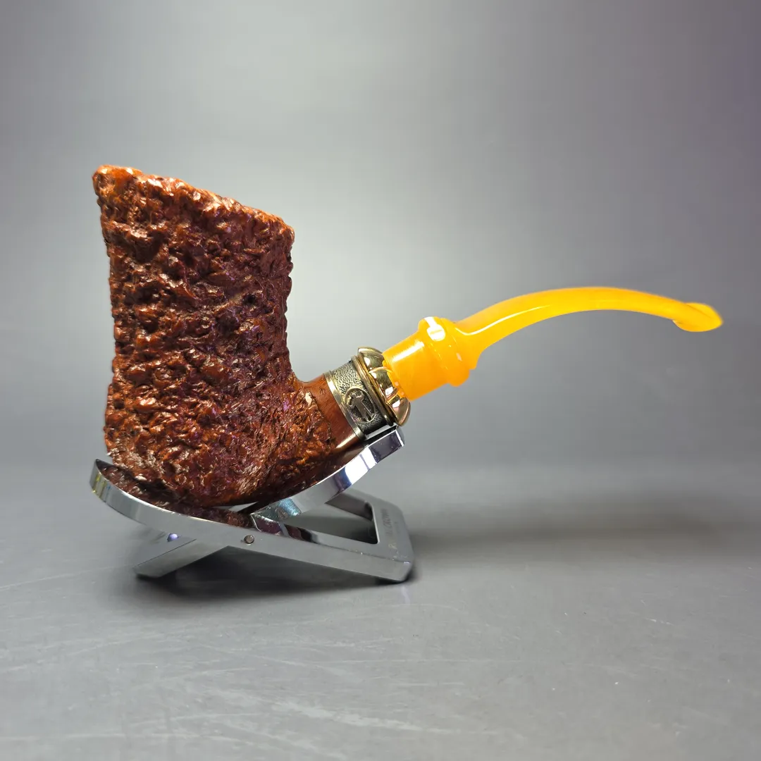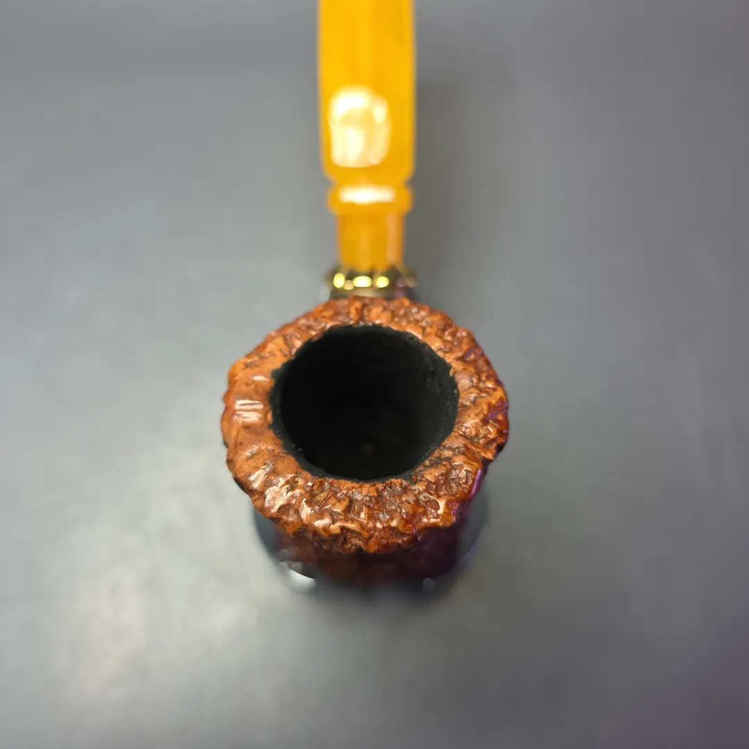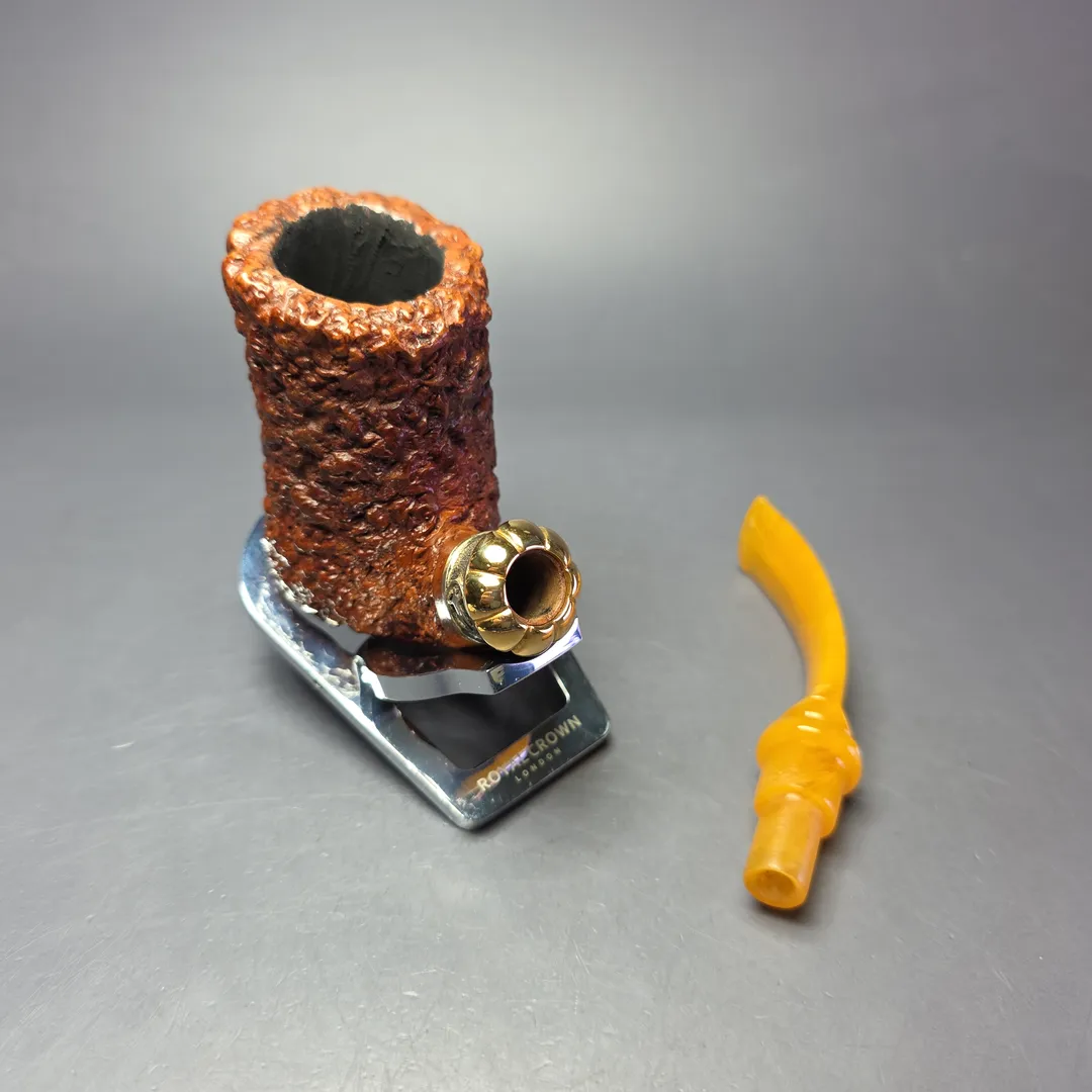 But this Melos is a little different to the rendition currently (still very occasionally) produced by the Sordinis. While it still bears the silver and gold mount seen on the contemporary Melos, the latter is typically a pot shape, with this one instead being a tremendously tall, saxophone-like bent Dublin. Having researched the matter further, it appears that the Melos originally designated the type of mount used (not unlike at Ser Jacopo, where Bruno Sordini once worked), with various shapes utilizing that same mount. Today, the Melos refers to the silver and gold-mounted pot design in its entirety, making this Dublin variation a rather uncommon find.