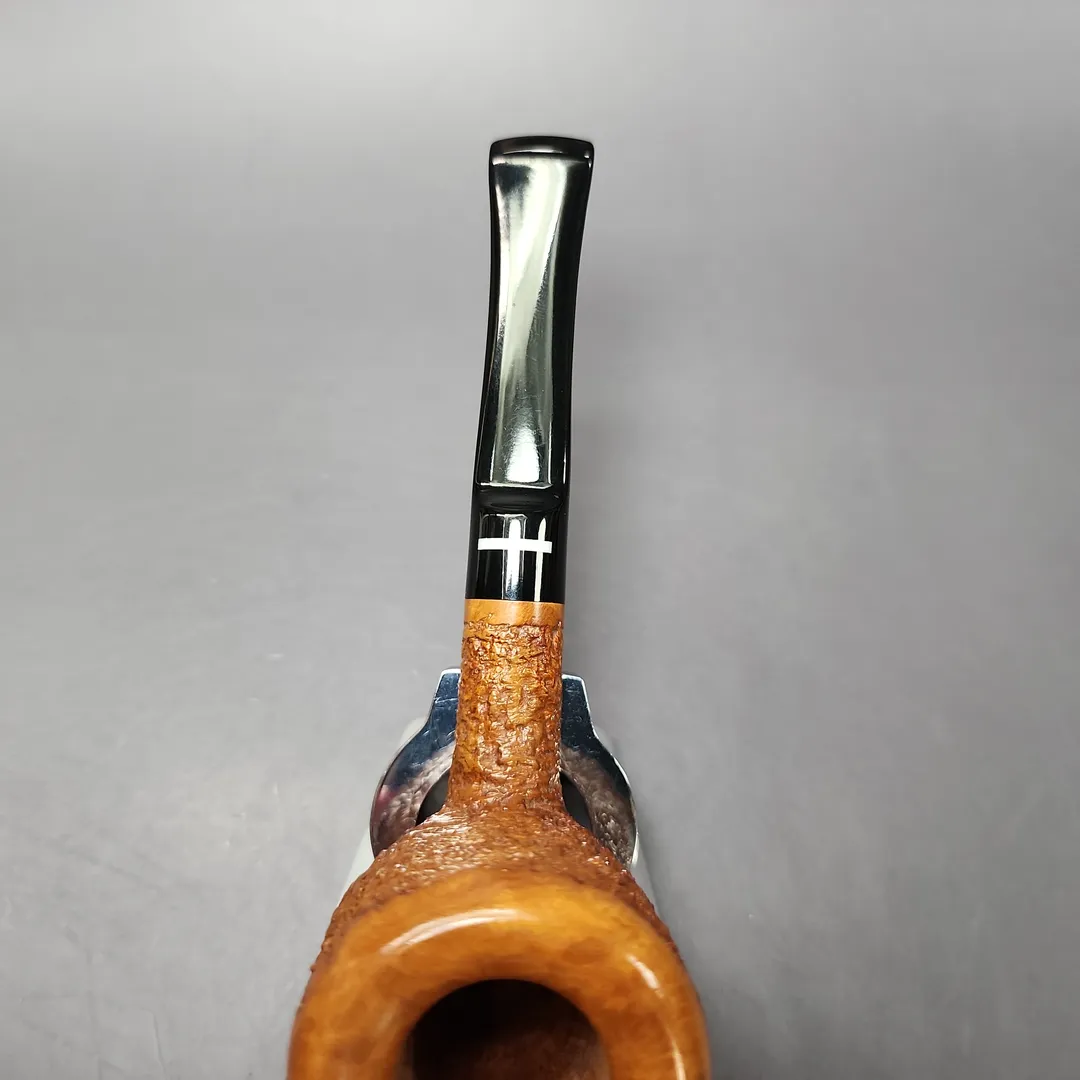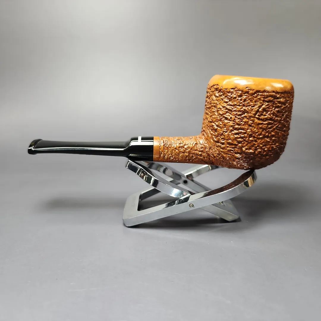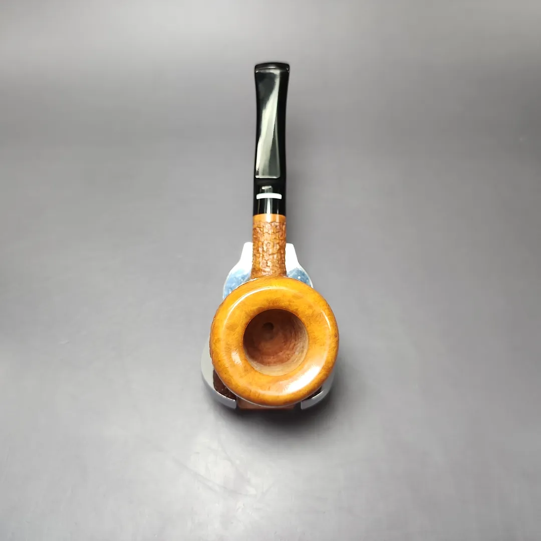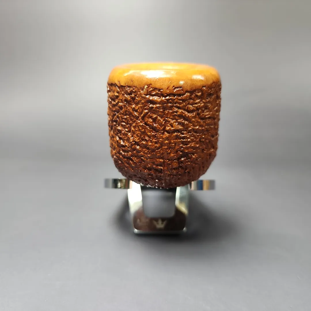 Bruto and Rosaria Sordini’s designs range from the bombastic to the reserved, from the freeform to the careful geometry of the Anglo-French standards. But even in the cases of the latter, they maintain an aesthetic that is beautifully out of the ordinary. This two-note grade Don Carlos, for example, is essentially a very old fashioned English pot, one not entirely unlike, say, a GBD 9437, or a Charatan 148. It retains the squat, muscular physique of such renditions (as well as their sloped inner rim), yet also adds just a little more height and heft, and rounds out the edges to give it a decidedly natural feel. Unlike just about any of the old English pipes, on the other hand, this pot rendition is dressed in Bruto and Rosaria’s especially granular take on Italy’s time-honored sea-stone rustication, which in this instance has been finished with a simple, light blonde top coat.