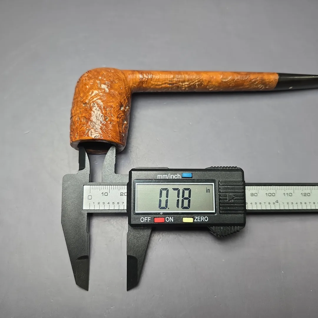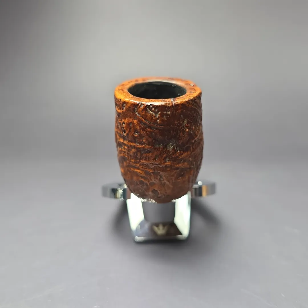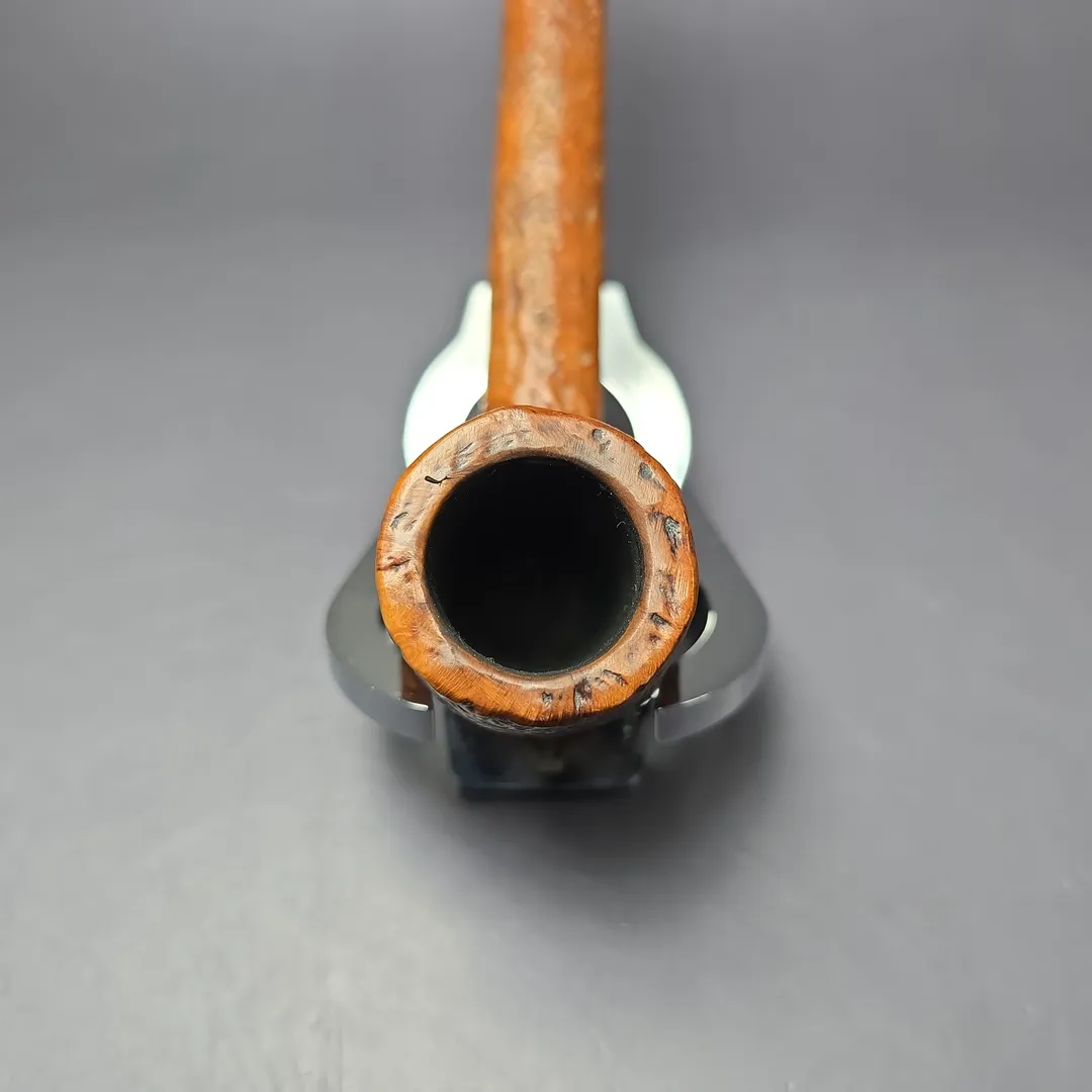 Dunhill’s ES was one of their “Quaint Shapes,” those being shapes that were not produced as regularly as other catalog shapes, instead only being made when a given block of briar seemed especially well suited for it. Among Dunhill’s Quaint Shapes are some of the make’s most iconic designs, such as the O squat bulldog and the LC swan-neck billiard, along with a number of lesser-known, but nonetheless rare and quite coveted ones, such as the CK author/Rhodesian or the US “beehive.” The, ES, on the other hand, might at first seem quite unremarkable. But this is not the case, especially for Dunhill historians. John Loring, for example, wrote a whole article on the matter of the ES (“The Extra Long Shank Dunhill Canadian”), in addition to its mentions in other articles dedicated to Dunhill’s various “long shank” shapes. Thought to stand for something like “Extended Shank,” the ES was indeed a Canadian shape with a longer than average shank compared to Dunhill’s other Canadians, such as the 335 or the EC (another Quaint). But it would seem, as Loring notes, that the proportions of the ES could vary significantly. Most crucially, for Loring, between its debut in the 1910s and retirement in the 1970s, one could divide Dunhill ES renditions into two groups: pipes with a shank of approximately 3 inches in length (from the back of the bowl to the beginning of the mouthpiece), which were quite typical; and pipes with a shank of 4 inches in length or longer, which were much rarer. Loring chalked this up to being a product of the opposing forces of consumer demand and material constraints; pipe smokers who favor Canadian shapes like them long, but the larger a pipe is in any direction, the greater the chance of discovering a disqualifying flaw when turning the stummel. The “typical” ES thus exhibited a shank of approximately 3 inches in length but, on those rare occasions where nature smiled upon Dunhill’s workers, a longer ES might just be born. This craggy Tanshell from 1958 is exactly that—an “extra long shank Dunhill Canadian,” as Loring had put it.