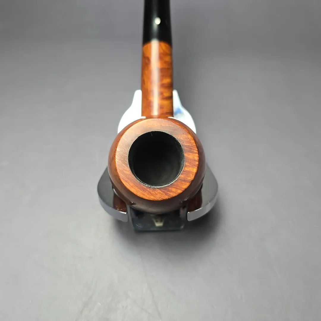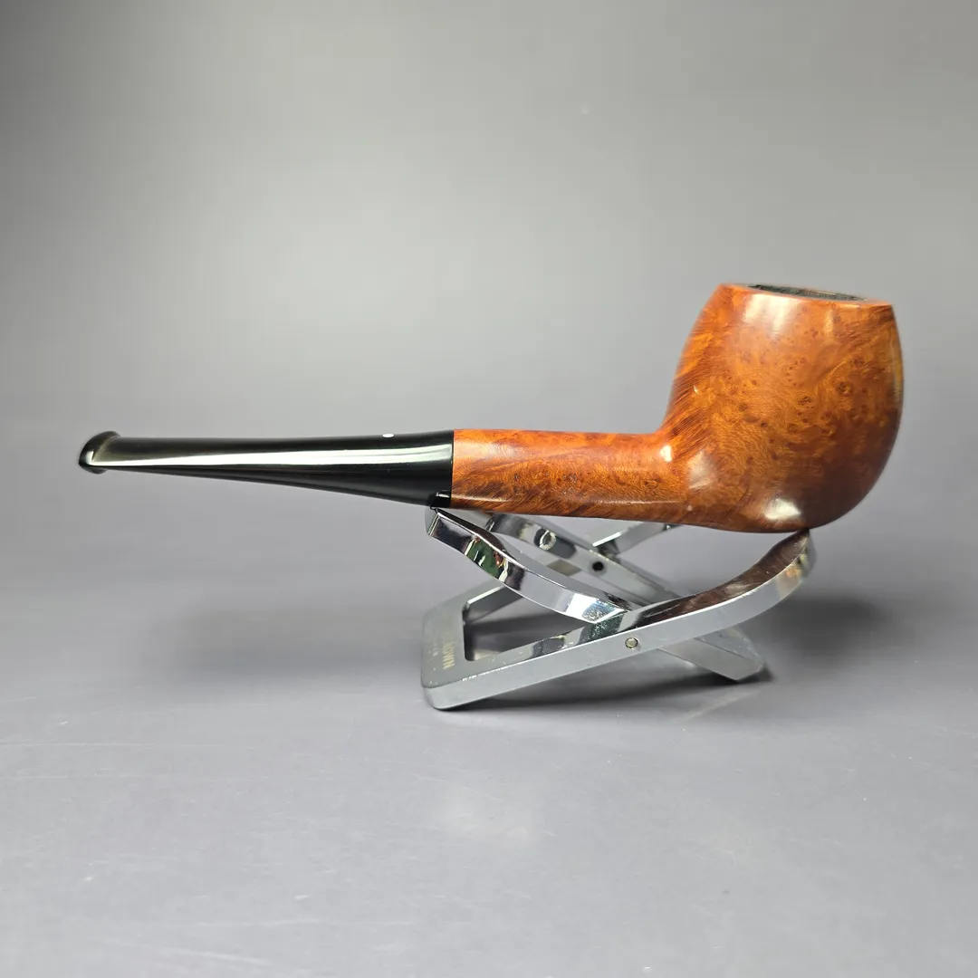 The “K” was one of Dunhill’s early “Quaint” shapes, i.e., shapes not in regular production, but which were made only when a block of briar showed especial potential for becoming something a little different. It’s a little more squat and stout than, say, the mid-century, 115 and has a longer shank than, say, the 256. This 1964 Root Briar K is a beauty of a rendition, and yet another example of a pipe that has me wondering whether Dunhill dropped the ball by not having a separate grade for excellent bird’s-eye patterns, as the Italians tend to do.
