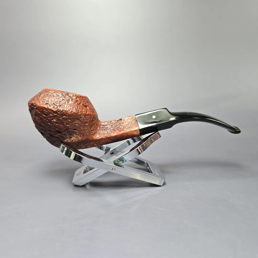 Dunhill’s shape “6P” might strike as a little strange at first, given that almost all of such have, historically, been either numerical (e.g., 120, 137, etc.) or alphabetical (e.g., O, LC, etc.,), with the latter comprising its Quaint shapes. But there are a handful of notable exceptions to the rule and, in this case, a notable rule of exception: saddle stem variants of tapered stem Quaint shapes. The LB is perhaps the best known example of this; presumed short for “Large Billiard,” “LB” was the stamp used for particularly stout billiard designs, which always featured a tapered stem. The 6LB, on the other hand, was a variant of the LB, with the same bowl affixed to a saddle stem, instead. The 6P was exactly the same. While the P was an uncommon Quaint shape from Dunhill’s mid-century Collectors’ Range, characterized by a squat, wide, bent bulldog bowl and tapered stem, the similarly uncommon 6P swapped out the latter for a saddle.