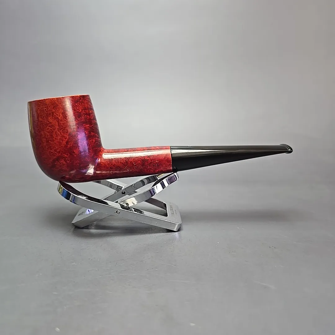 The billiard is one of the oldest shapes in briar all of briar pipes, and it is probably the most widely produced of any that have been conceived thus far. While the shape is relatively simple, however, there is a great variety of approaches to the billiard form depending on where and when any given rendition was made, and on who made it. Amidst this variety, however, some renditions stand out as a kind of “gold standard” for what a good billiard should be, which brings us to the Dunhill “LB” variations. The LB (“large billiard”) was a shape first offered by Dunhill in the interwar years, and would become a staple in the make’s catalogs for much of the 20th century. It was a rather stout design, especially during the time it was conceived, but it proved to be very popular. After the Second World War, Dunhill created a few new shapes that played on that same LB theme, one of which was the “LBS.” Short for “large billiard slender,” the LBS is essentially an LB whose form has been “stretched” slightly so that the shank is slimmer and longer. Like the LB, the LBS would go on to become an archetype of sorts regarding the construction of a good billiard—one that, for our evolved, modern tastes, has all of the right angles and proportions. This one comes from 1970, for example, and it is certainly a great pipe, both to look at and to handle (though, due to the current haptic limitations of the Internet, you’ll have to trust me on that last part). Part of the former, on the other hand, comes from the Bruyere finish, which, at the time this one was made, was still its classic claret red hue, rather than the dark burgundy used by Dunhill today.