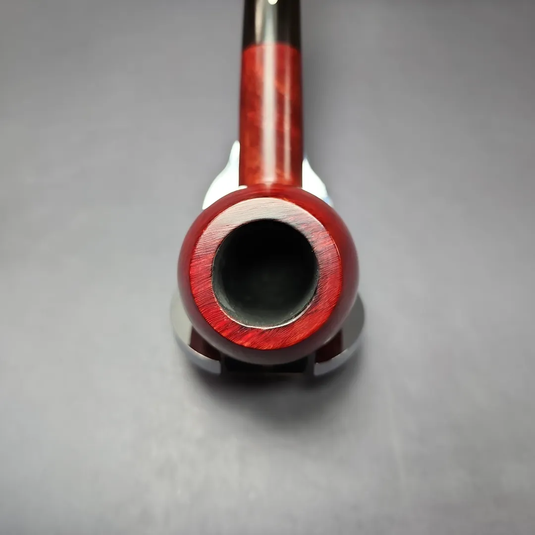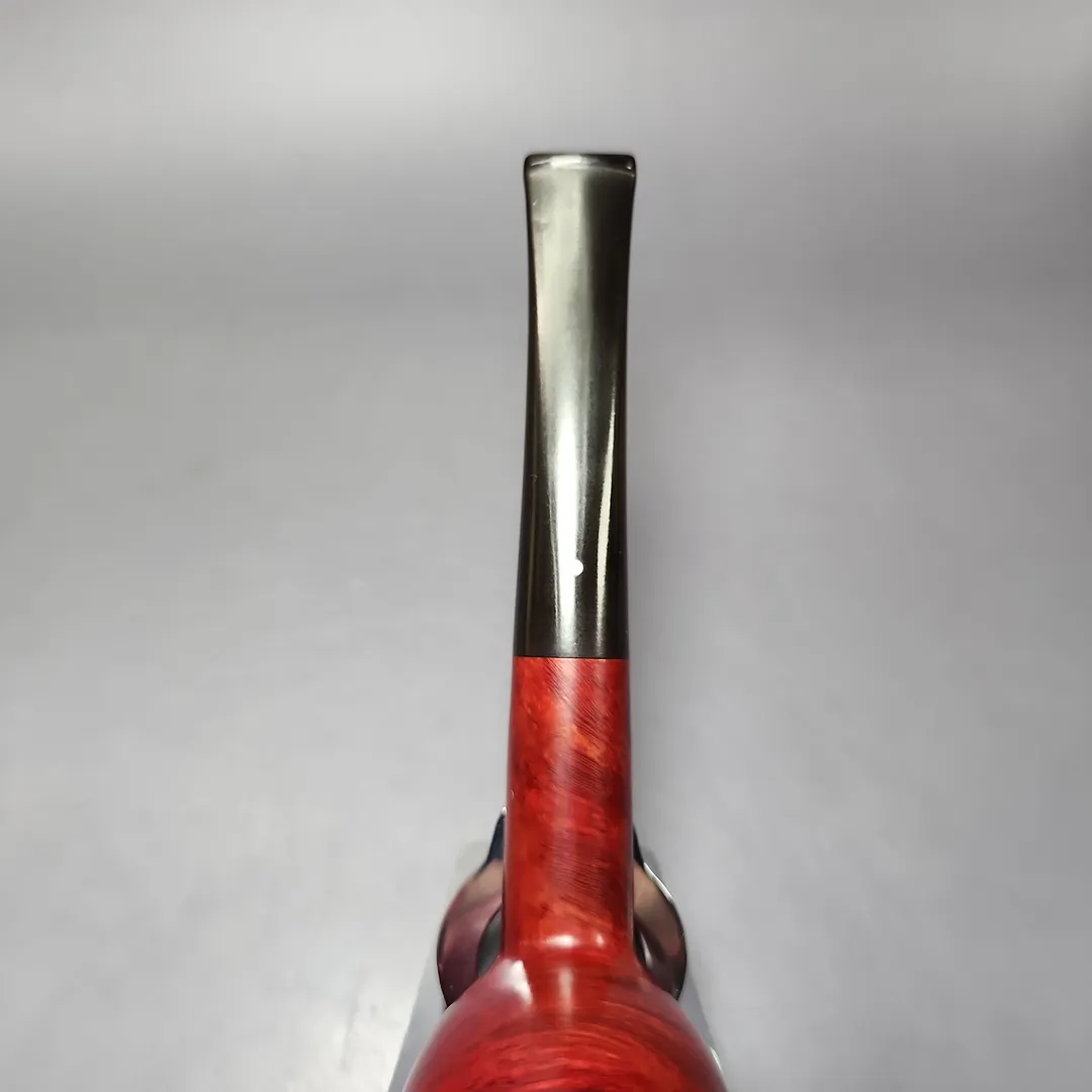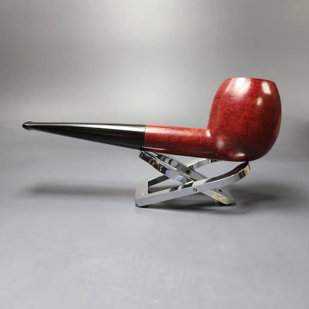 Around the mid-century, Dunhill formalized their “OD” series into a set of distinct shapes, each with a three-digit shape code. There were pipes that were, with the Anglo-French tradition, of unconventional design; there were pipes that were, for the time, of unconventionally large size; and there were shapes that could be considered a little of both. The 806 was a little of both, taking the form of a large, straight shape with an especially bulbous bowl somewhere between an apple and an egg. This one wears Dunhill’s signature, ruby red Bruyere finish, though in its lighter, mid-century iteration, rather than the much darker hues taken on by the Bruyere in more recent decades. I find that this older iteration of the finish works especially well on the 806’s ballooning figure—like a good old red delicious in the hand.