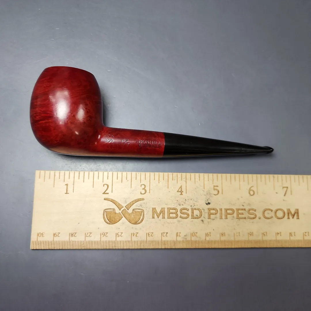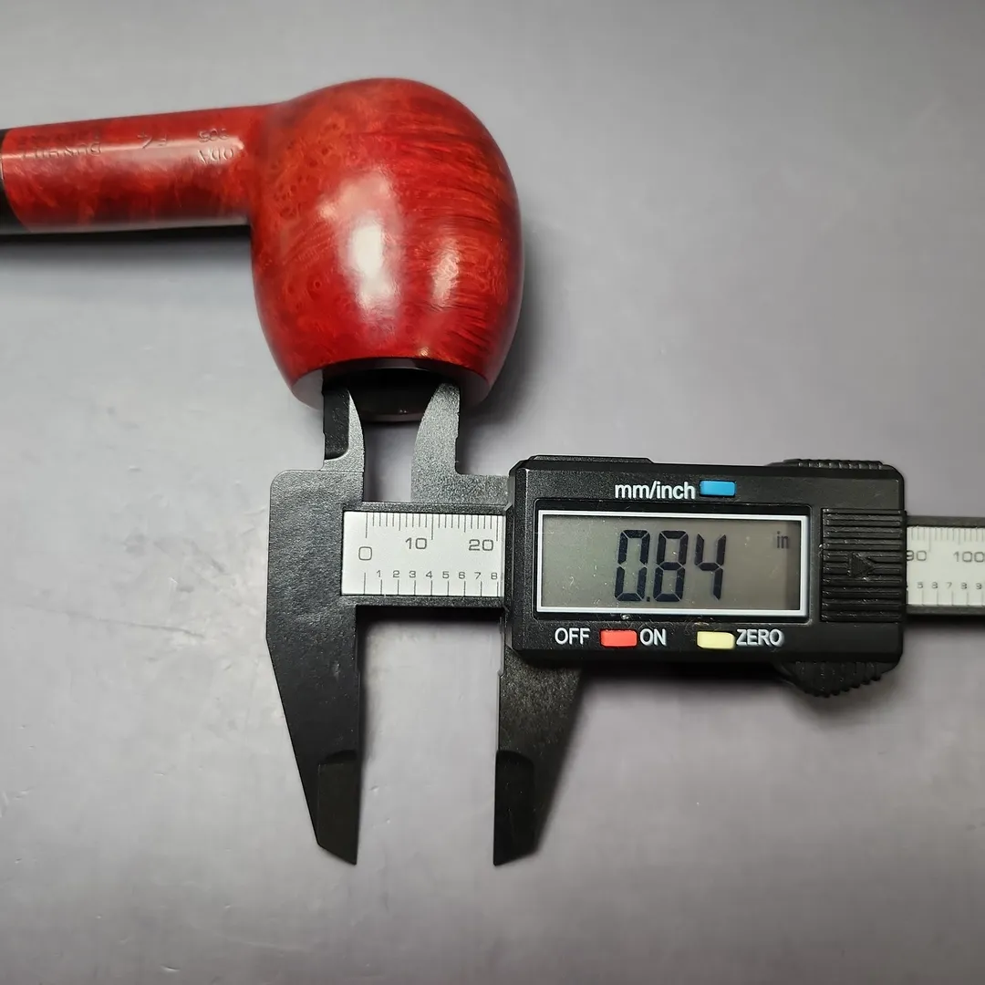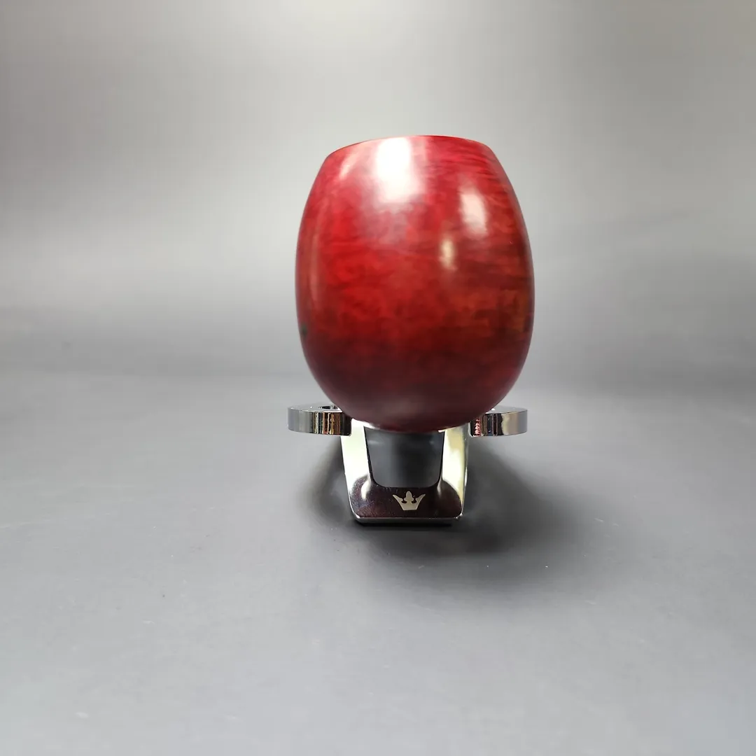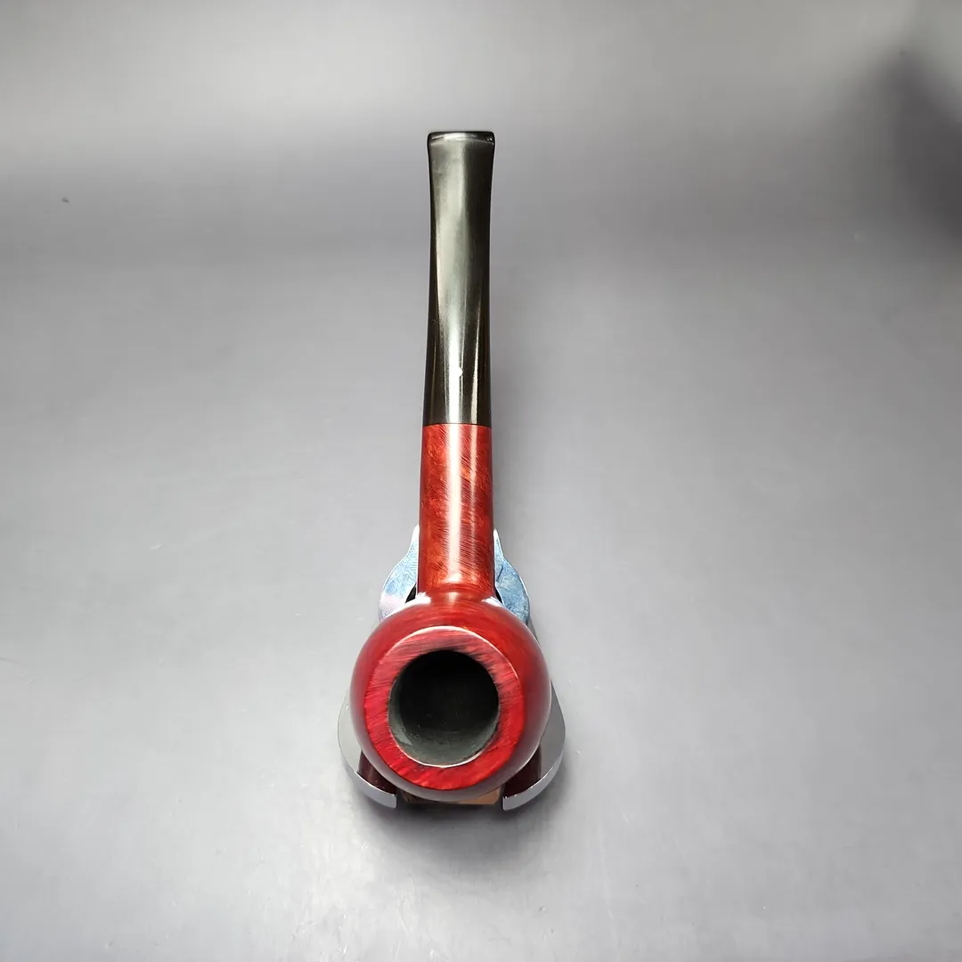 Around the mid-century, Dunhill formalized their “OD” series into a set of distinct shapes, each with a three-digit shape code. There were pipes that were, with the Anglo-French tradition, of unconventional design; there were pipes that were, for the time, of unconventionally large size; and there were shapes that could be considered a little of both. The 806 was a little of both, taking the form of a large, straight shape with an especially bulbous bowl somewhere between an apple and an egg. This one wears Dunhill’s signature, ruby red Bruyere finish, though in its lighter, mid-century iteration, rather than the much darker hues taken on by the Bruyere in more recent decades. I find that this older iteration of the finish works especially well on the 806’s ballooning figure—like a good old red delicious in the hand.