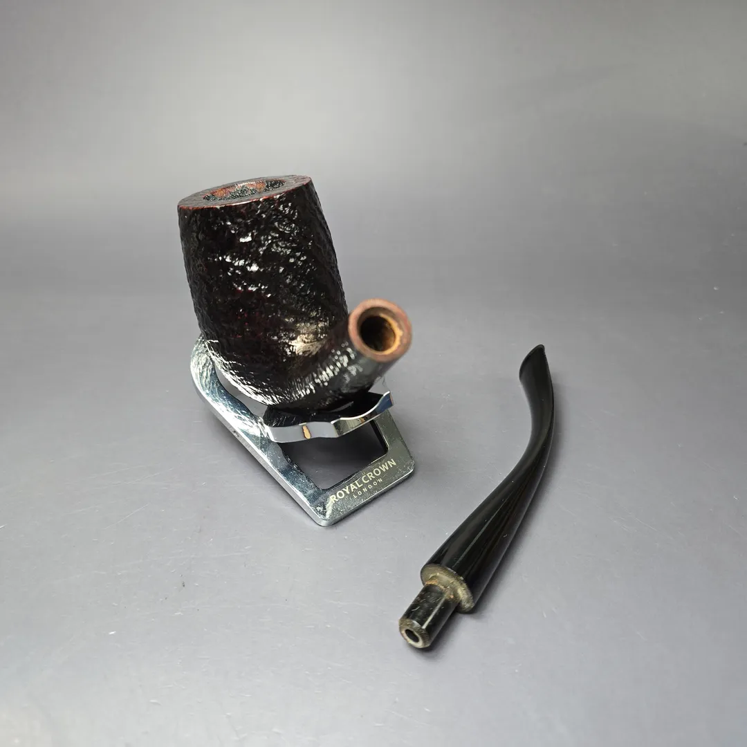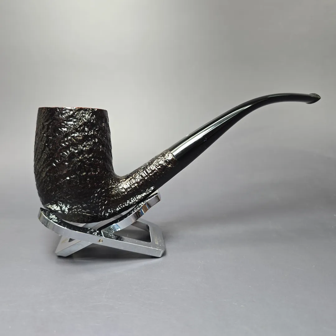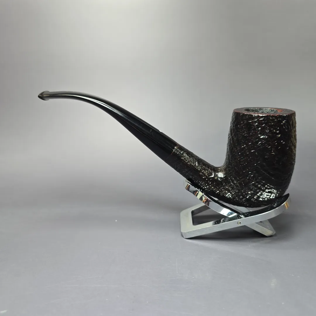 Around the mid-century, Dunhill formalized their “OD” series into a set of distinct shapes, each with a three-digit shape code. There were pipes that were, with the Anglo-French tradition, of unconventional design; there were pipes that were, for the time, of unconventionally large size; and there were shapes that could be considered a little of both. These shapes have historically been produced in much smaller quantities than most of Dunhill’s other shapes, making them rare and highly sought after. This is an ODA Shell Briar, though it is slightly peculiar in that I don’t note a shape code on it. It is possible that it was buffed off, or that it was one of the ODA shapes in the mid-1970s John Loring spoke about, which were absent a shape code. Those familiar with the post-war OD shapes will likely recognize this one, however. It is quite clearly an 806 rendition, one of Dunhill’s “semi-giants” and something of a middle ground between the shape 120 bent billiard and one of the magnum LC Quaint shapes. With its towering bowl and swan-neck curvature, it’s hard to mistake it for much else in Dunhill’s catalog.