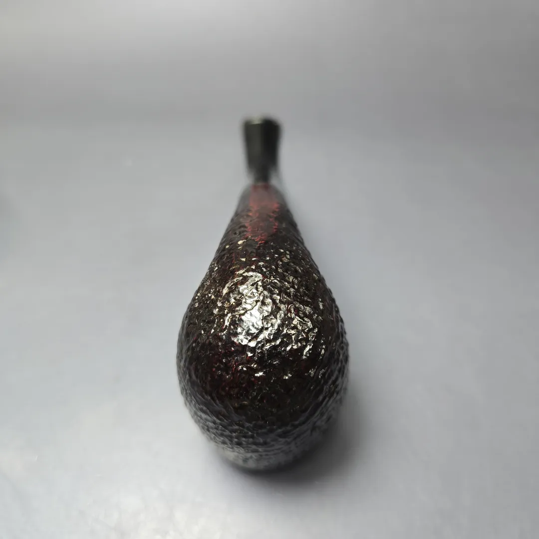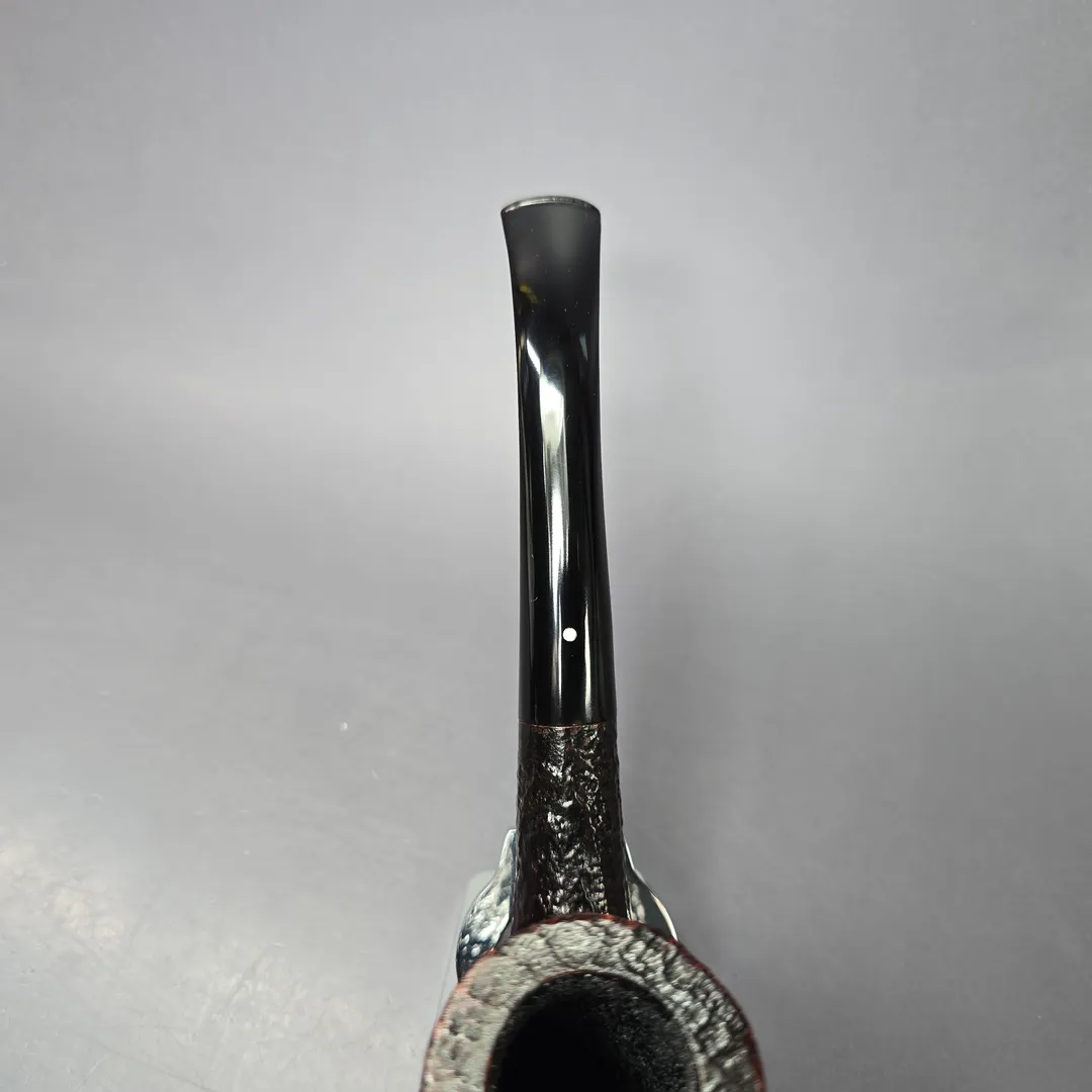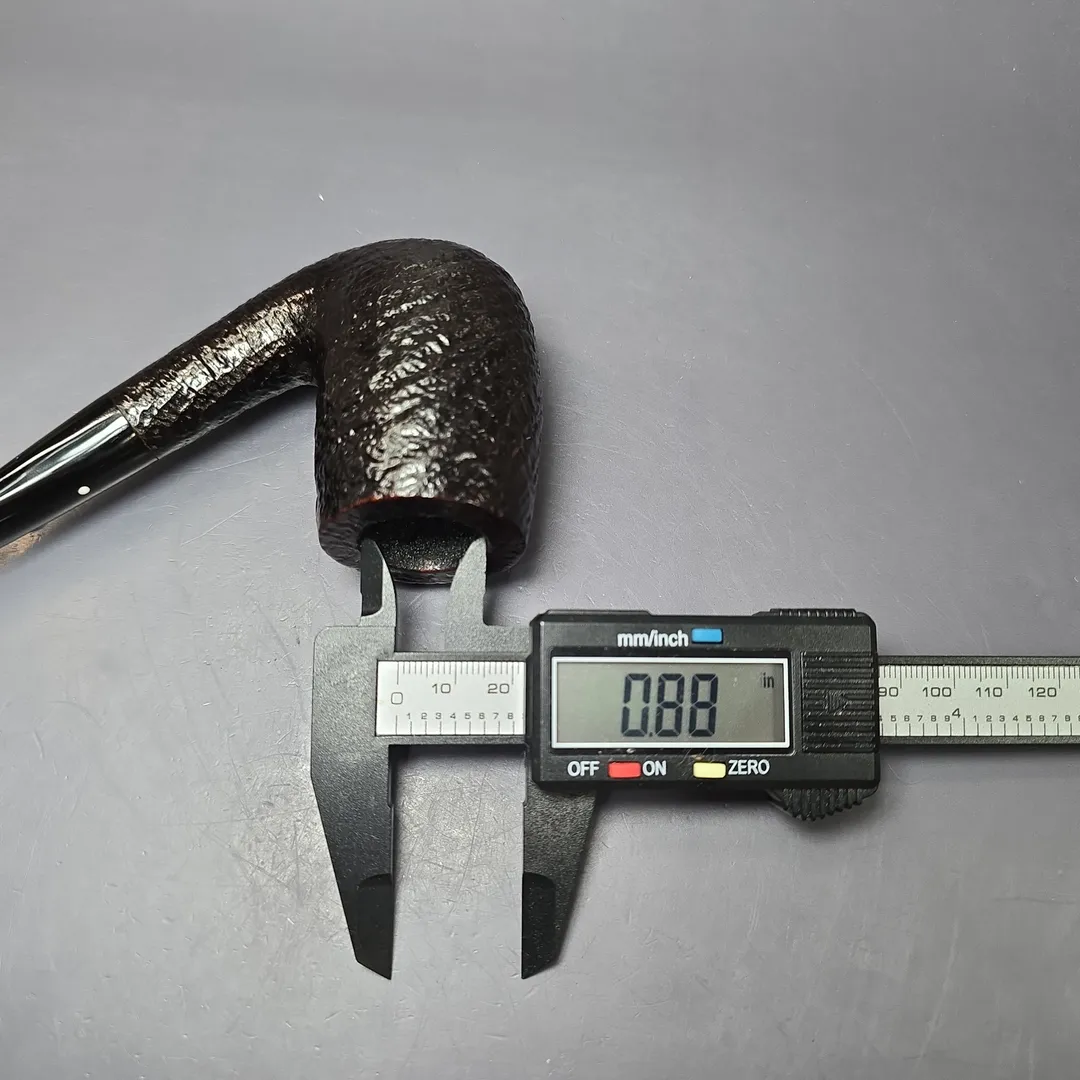 Around the mid-century, Dunhill formalized their “OD” series into a set of distinct shapes, each with a three-digit shape code. There were pipes that were, with the Anglo-French tradition, of unconventional design; there were pipes that were, for the time, of unconventionally large size; and there were shapes that could be considered a little of both. These shapes have historically been produced in much smaller quantities than most of Dunhill’s other shapes, making them rare and highly sought after. This is an ODA Shell Briar, though it is slightly peculiar in that I don’t note a shape code on it. It is possible that it was buffed off, or that it was one of the ODA shapes in the mid-1970s John Loring spoke about, which were absent a shape code. Those familiar with the post-war OD shapes will likely recognize this one, however. It is quite clearly an 806 rendition, one of Dunhill’s “semi-giants” and something of a middle ground between the shape 120 bent billiard and one of the magnum LC Quaint shapes. With its towering bowl and swan-neck curvature, it’s hard to mistake it for much else in Dunhill’s catalog.