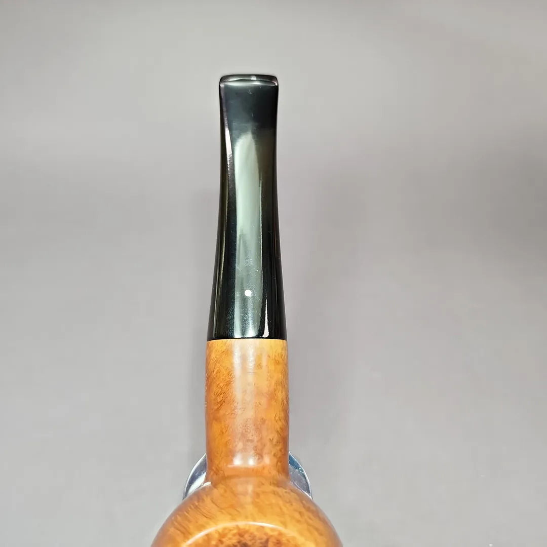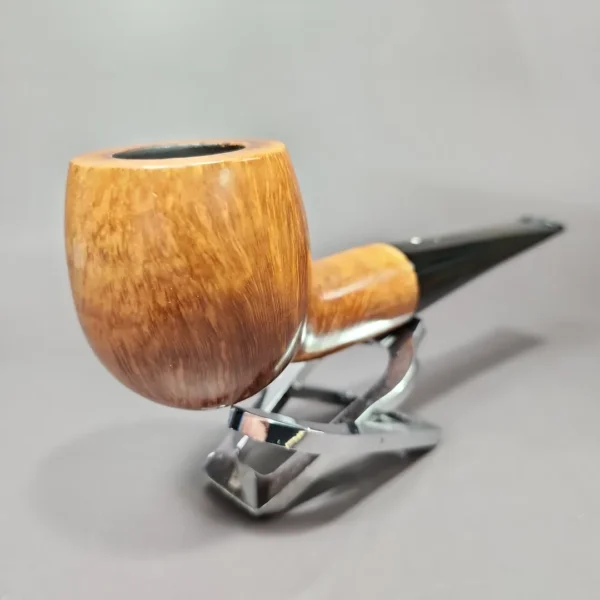 Dunhills are generally special pipes, but some Dunhills are even more special than others. Like this one – a Dunhill ‘Collector’ grade. Aptly named, the Collector was introduced in 1978 as less of a formal line, and more of a chance for Dunhill’s craftsmen to show off what they could do when using ‘freehand’ carving techniques. Freehand, sometimes called “hand turned,” pipes have the freedom to explore beyond the shapes that factory machinery is otherwise calibrated for, such as in the case of this delightfully bulbous, almost acorn-like, billiard. As the pictures of this pipe show, this allowed its carver to ‘chase the grain’ of the briar used, yielding excellent, tight straight grain patterns on the sides of the bowl, and bird’s-eyes on the rim. This very early Collector, from 1980, has been given a Root finish in order to truly let these grain patterns sing.