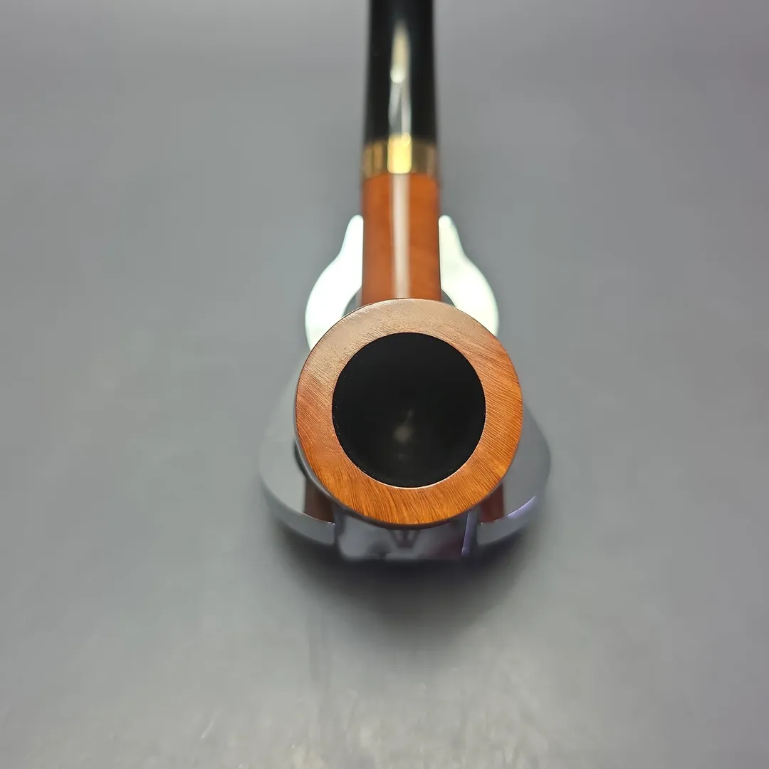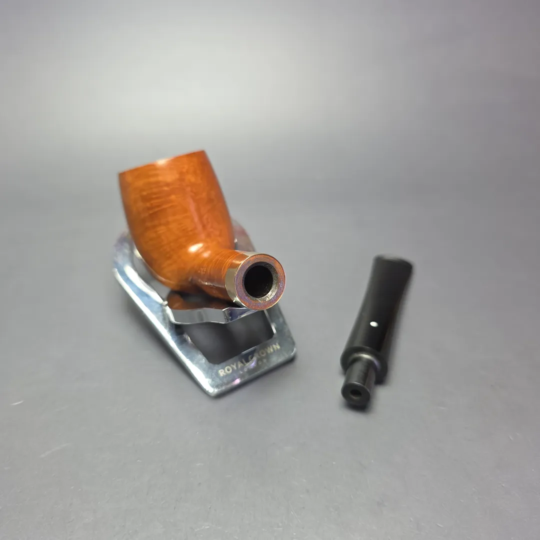Suppose one does win a slow smoking competition—what, then, would be a fitting prize for such an individual? A pipe, of course. Slow smoking competitions have been held for decades, and some organizations hold one annually. There are competitions held by smaller clubs, with the first prize often being a modest, but nonetheless well made pipe from a local company or artisan; there are also national competitions, where the awards are a little more high-end. And then there are international competitions, sometimes with hundreds of competitors. It’s these latter events where first place holds the promise of a truly special. In 1984, the European Slow Smoking Competition was held in Copenhagen, Denmark. While I assume there will have been some excellent runner-up prizes (there often are for competitions of that scale), the 1st place prize was none other than a Dunhill Root Briar. This would already be quite a prize, but Dunhill went even further. Not only was the pipe—a classic, group 4 billiard—mounted with an 18 karat solid gold collar, it was presented in a special, custom-fitted cedar wood hard case, seen here.