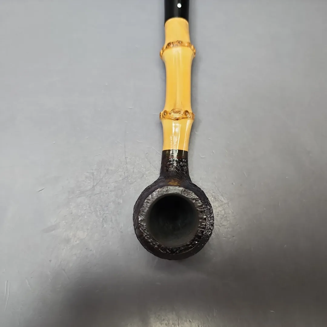 Once the briar shortage eased, Dunhill continued to utilize bamboo in their pipe designs, though much less frequently, and without the Whangee appellation. Instead, these pipes were reserved for things like the “Collectors’ Range” and other occasional releases. This one, from 1998, remains eminently faithful to the original Whangees, taking the form of a slightly long and very lightweight apple, dressed in Dunhill’s signature Shell Briar sandblast.