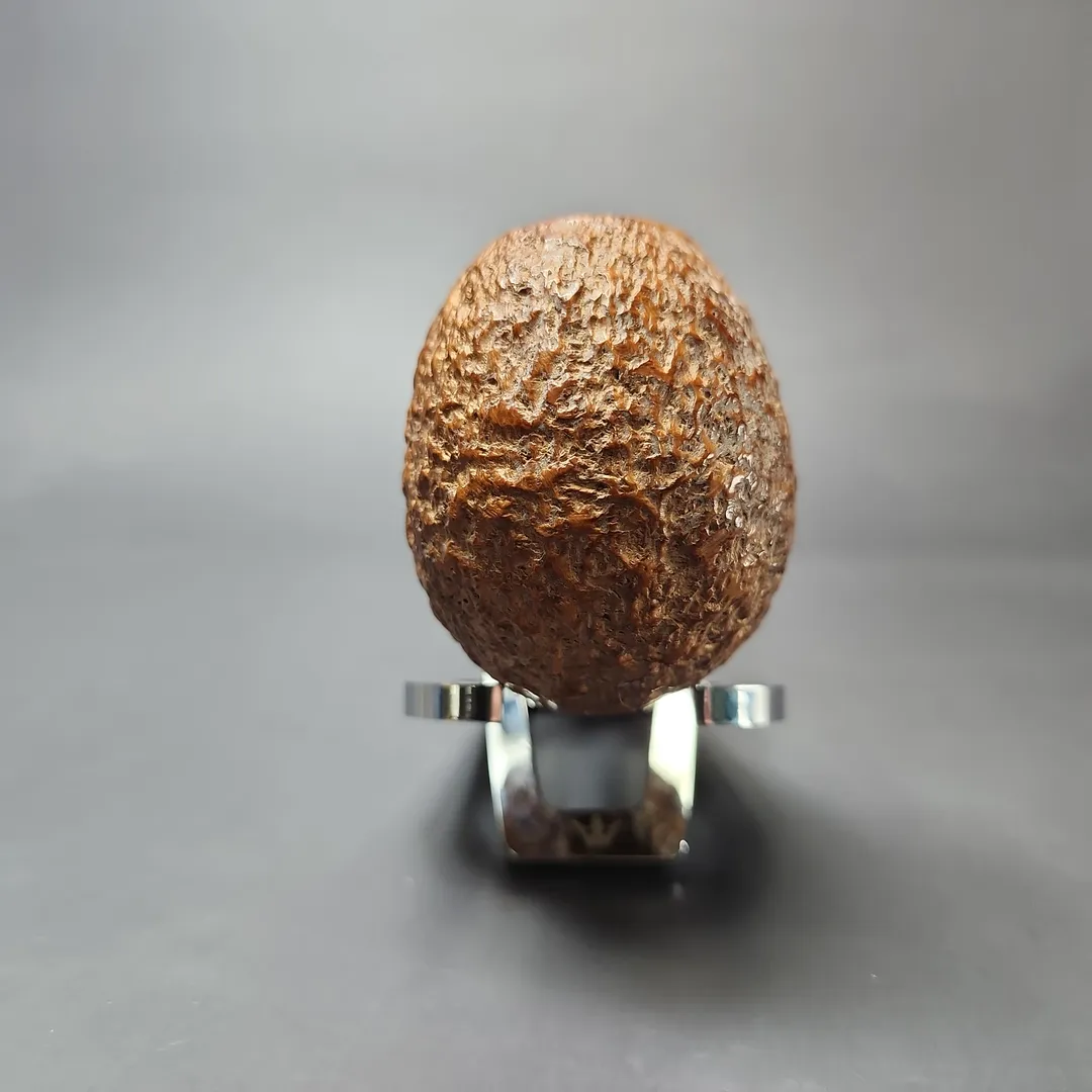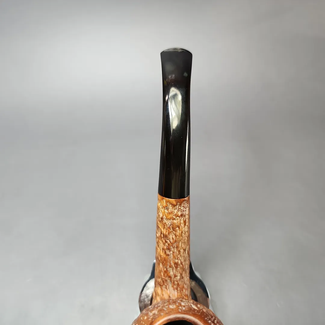 Though Ed Burak’s pipes spanned a vast variety of shapes and styles, there were, nonetheless, certain motifs that he liberally incorporated across the entirety of his career. Burak’s pipes were often very large, for example, and they were often very modern re-imaginings of traditional, Anglo-French standards. And, as has been mentioned time and again in our listings of Burak’s pipes, he was seemingly infatuated with sharp bends, with his designs frequently featuring difficult-to-achieve, rollercoaster curvatures from button to base. This apple/egg rendition is no exception, and indeed it almost looks like a Dunhill LC, but for its comparatively squat, round bowl.