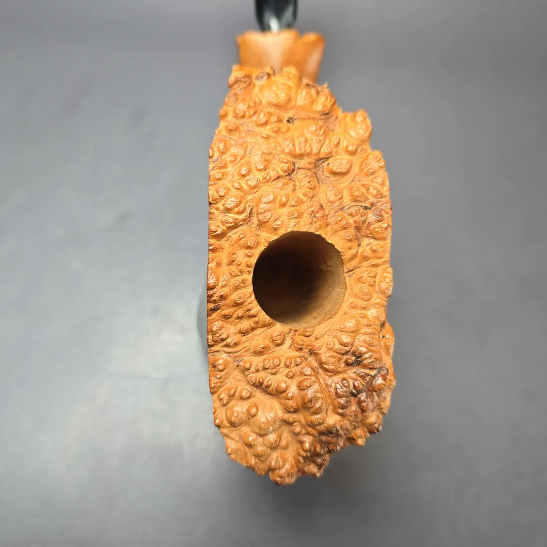 This pipe is completely unsmoked. I note a couple of small, worn out fills on the bowl’s underside, but nothing major in the slightest.