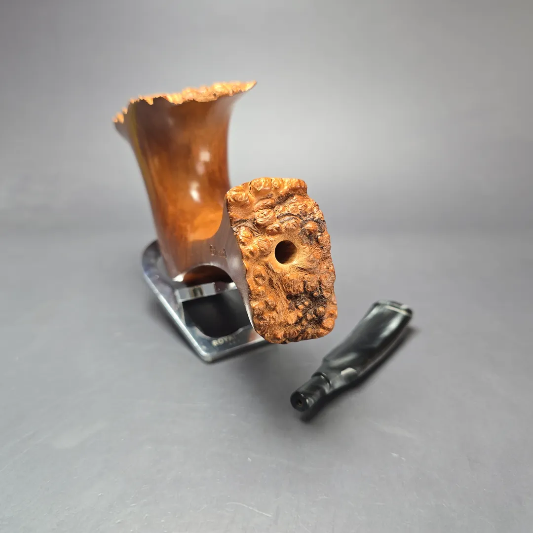 While it has, at times, contracted other parties to produce pipes under its name, Edward’s used to manufacture both pipes and tobacco of its own, with a view to becoming the “American Charatan” for the former. The brand was a pioneer for American freehand pipes in this way, with its employed carvers including the great Randy Wiley. This particular pipe looks to be from around the 1960s-1970s, back when Edward’s prided itself on using choice Algerian briar (which the Algerian war of independence later interrupted the supply of) which was specially oil-cured and very lightly finished.