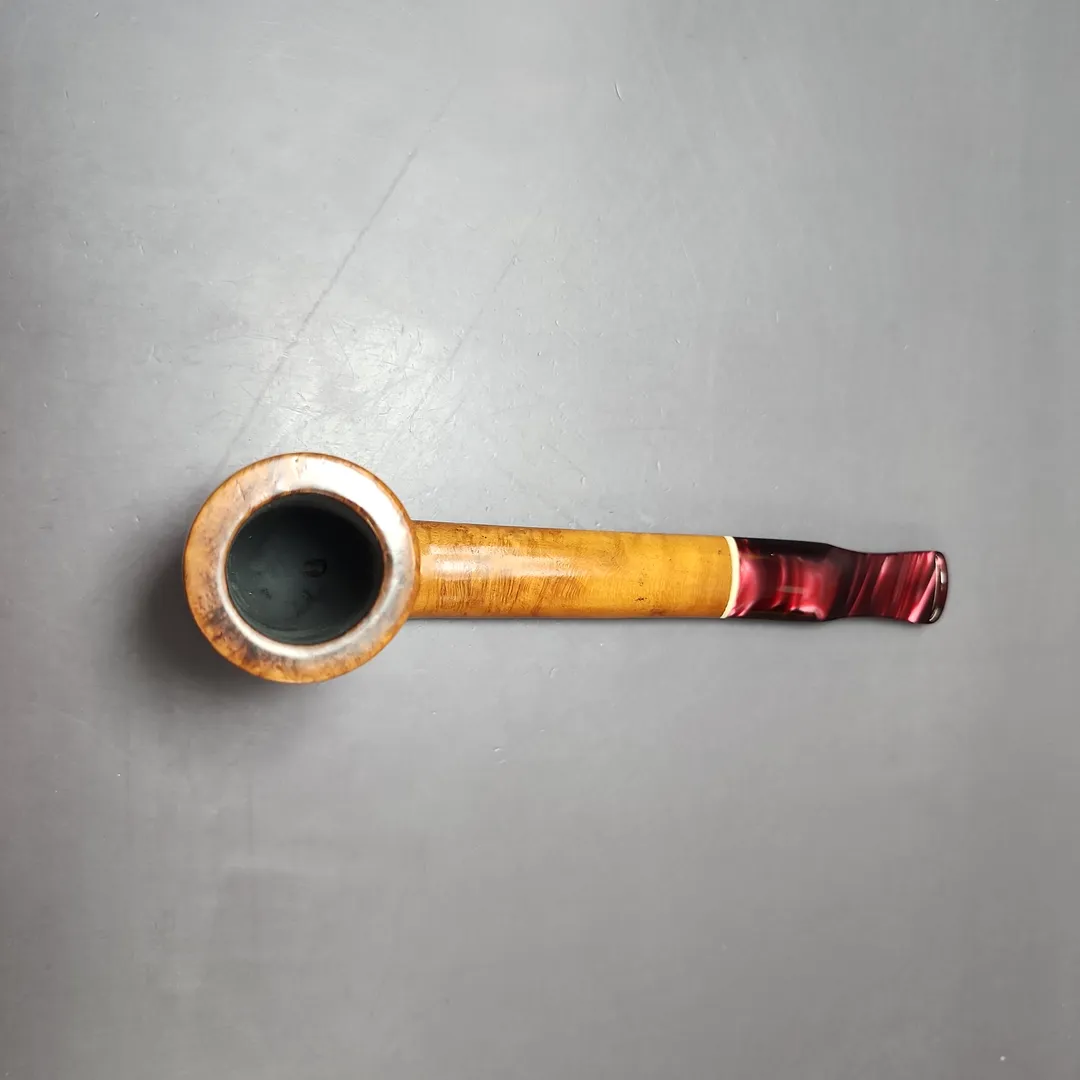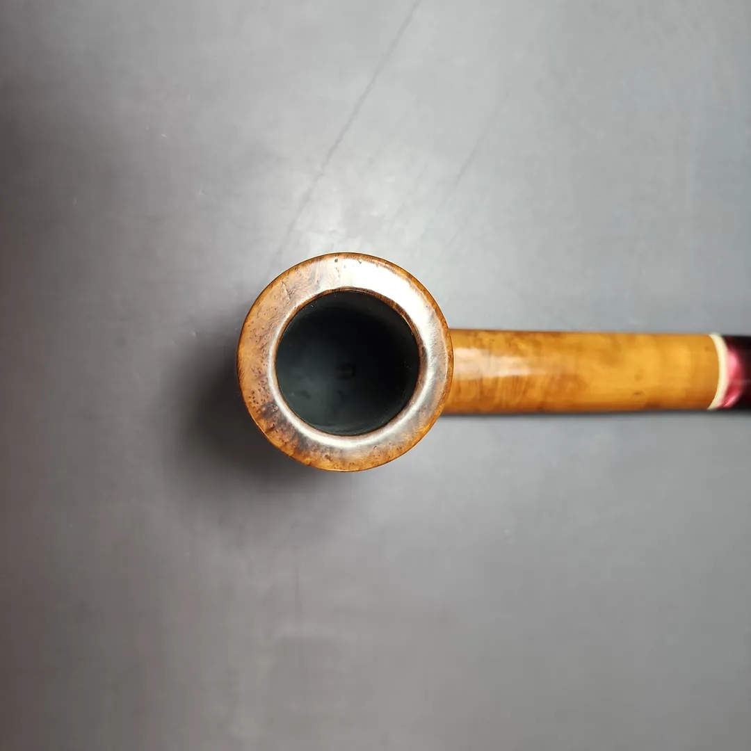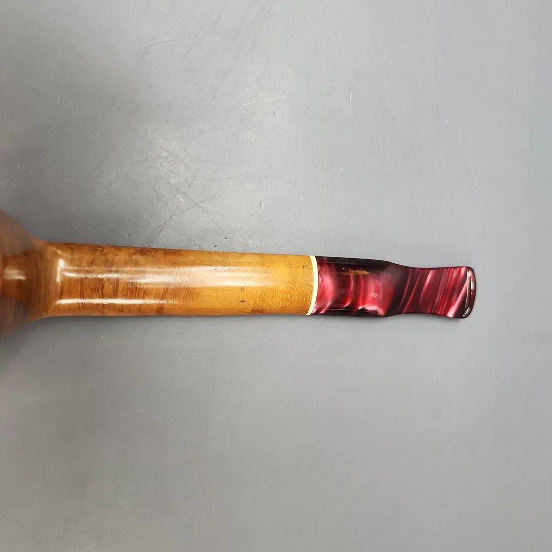 Here we have another example of Edward’s signature Algerian briar pipes, but this time the design is more classically-inclined. A traditional, albeit very long, rendition of an Anglo-French lumberman, it boasts an exceptionally large chamber, all while remaining quite lightweight. The stem is a more modern red and white swirl acrylic, resulting in something not unlike an upmarket Savinelli.