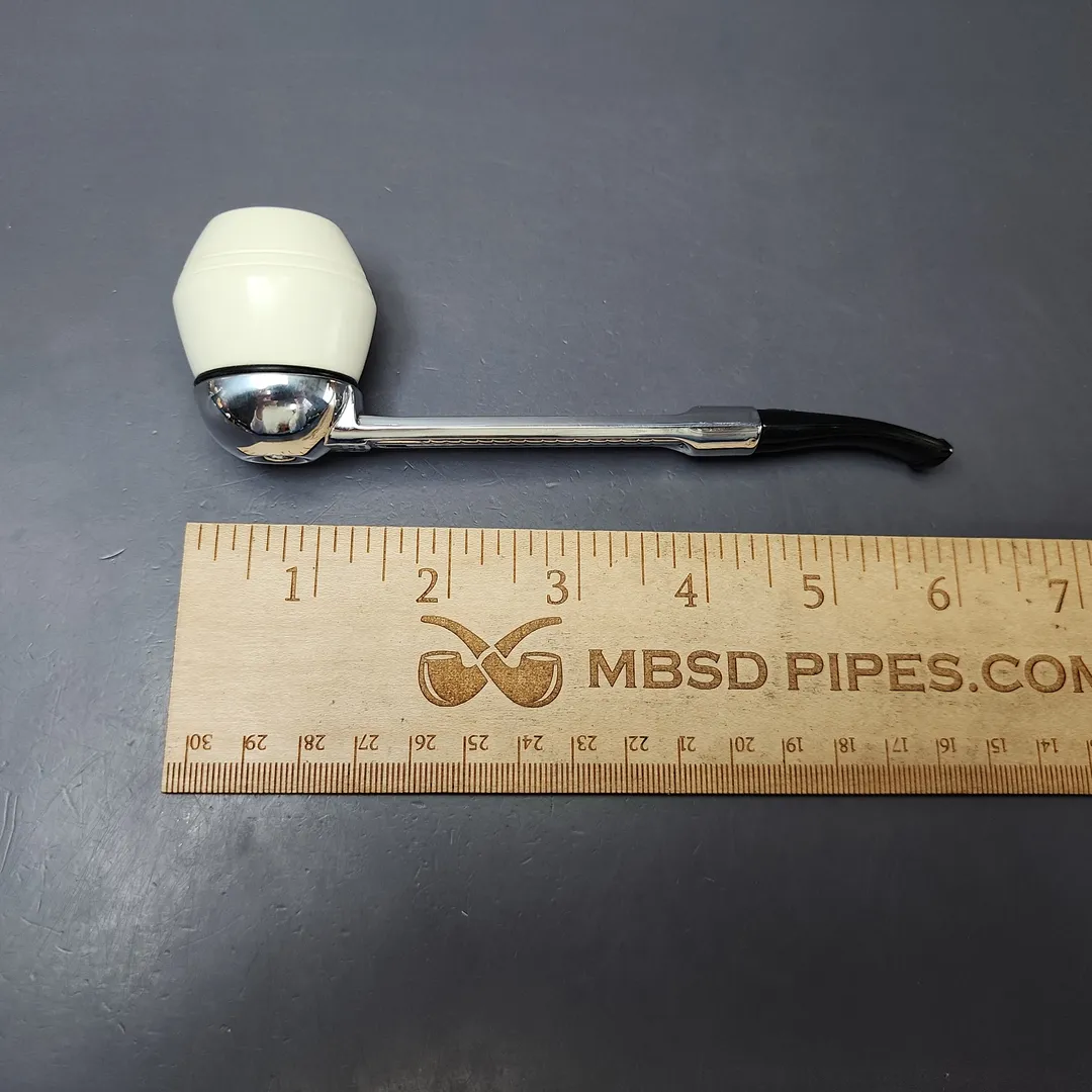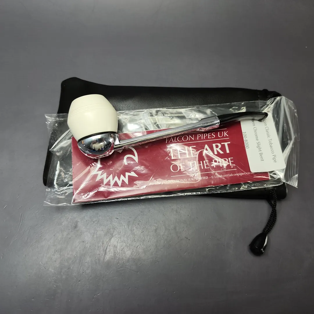 This combo features the chrome Falcon Classic Curved Stem, along with a Rhodesian shaped bowl carved from our usual high-grade block meerschaum.