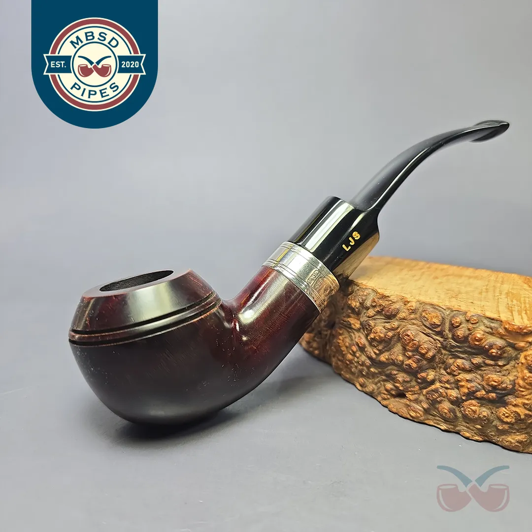 Having worked in Dunhill’s finishing department for many years, Dolly Wood had an especially discerning eye for grain. When she and Les Wood started making their own pipes, it was Dolly that decided which of the stummels Les had turned were fit to be left smooth, and which would be sandblasted or rusticated. As a result, around 90% of the pipes Les and Dolly made across their career were given the latter treatment, with the majority of those being “Barked”—i.e., given the Woods’ signature, ultrafine rustication. The remaining 10% were left smooth; the Root was given a light, natural smooth finish; the Tudor Root was orange-brown; and the Reo was a deep burgundy, not entirely unlike the Dunhill Bruyere. This particular Ferndown is an example of the latter. Though it is on the smaller side for Ferndowns, it is by no means a small pipe, as neither Les nor Dolly favored the kinds of “coffee break” group 1 and 2 sizes familiar to early to midcentury briars. Instead, I’d say it’s a “goldilocks” Rhodesian rendition, complete with one of Les’s own hand-turned silver collars.