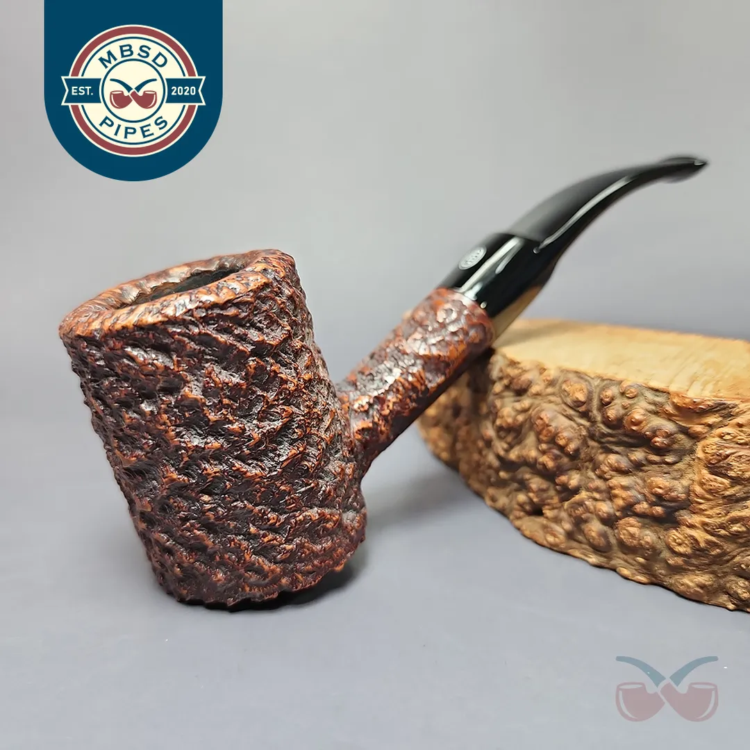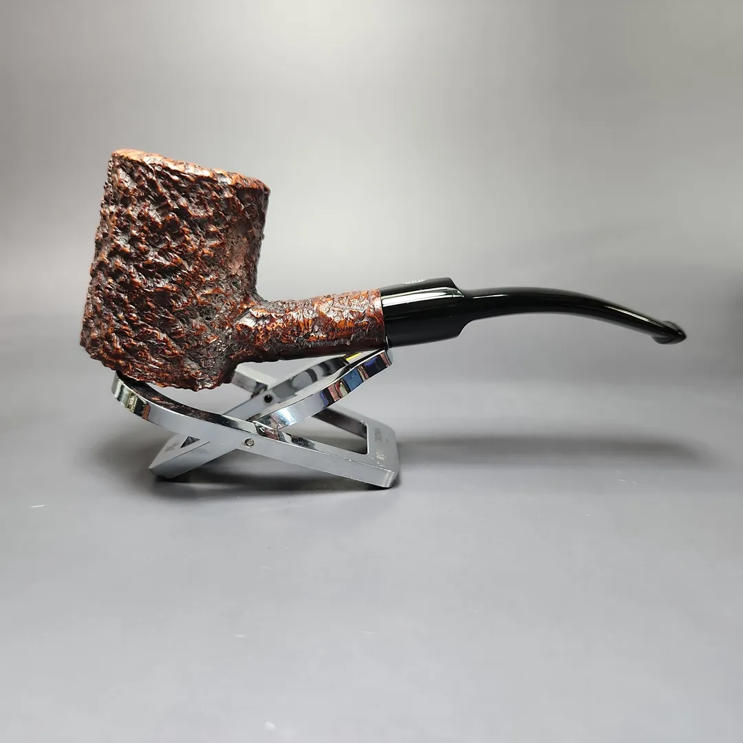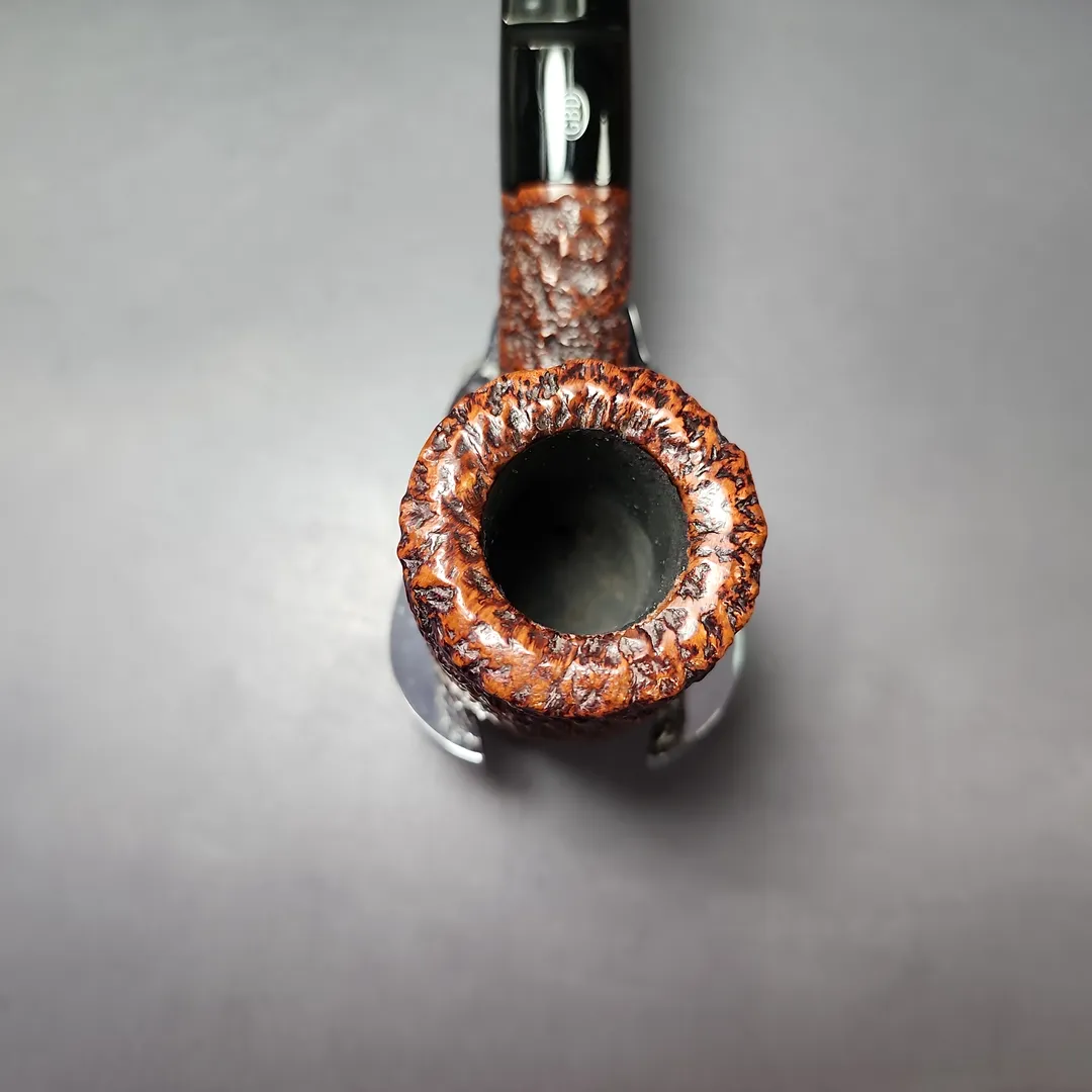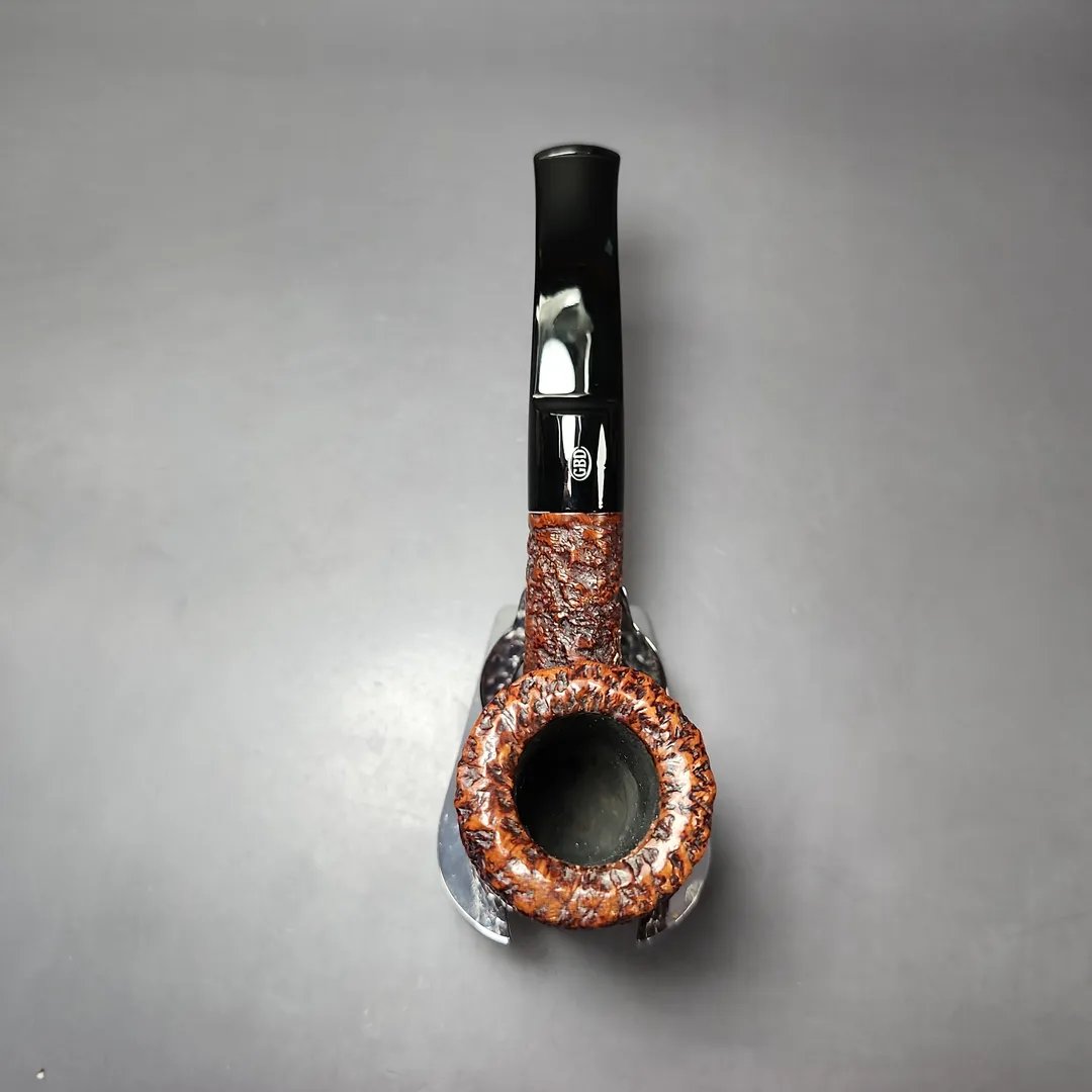 GBD’s Giant line was, as the name indicates, one of oversized pipes, not unlike the Conquest, Collector, and Colossus grades used to designate oversized pipes from other, specific, lines. Like the latter, the Giant was large, though still relative to traditional Anglo-French conventions, making for a big, yet very manageable pipe. This one is a hearty poker shape, dressed in an interesting rustication that looks like it may have been polished afterward, a little like another old GBD line, the Granitan. There’s more depth to the finishing on this one, however, with an aesthetic that almost looks like a combination of rustication and sandblasting.