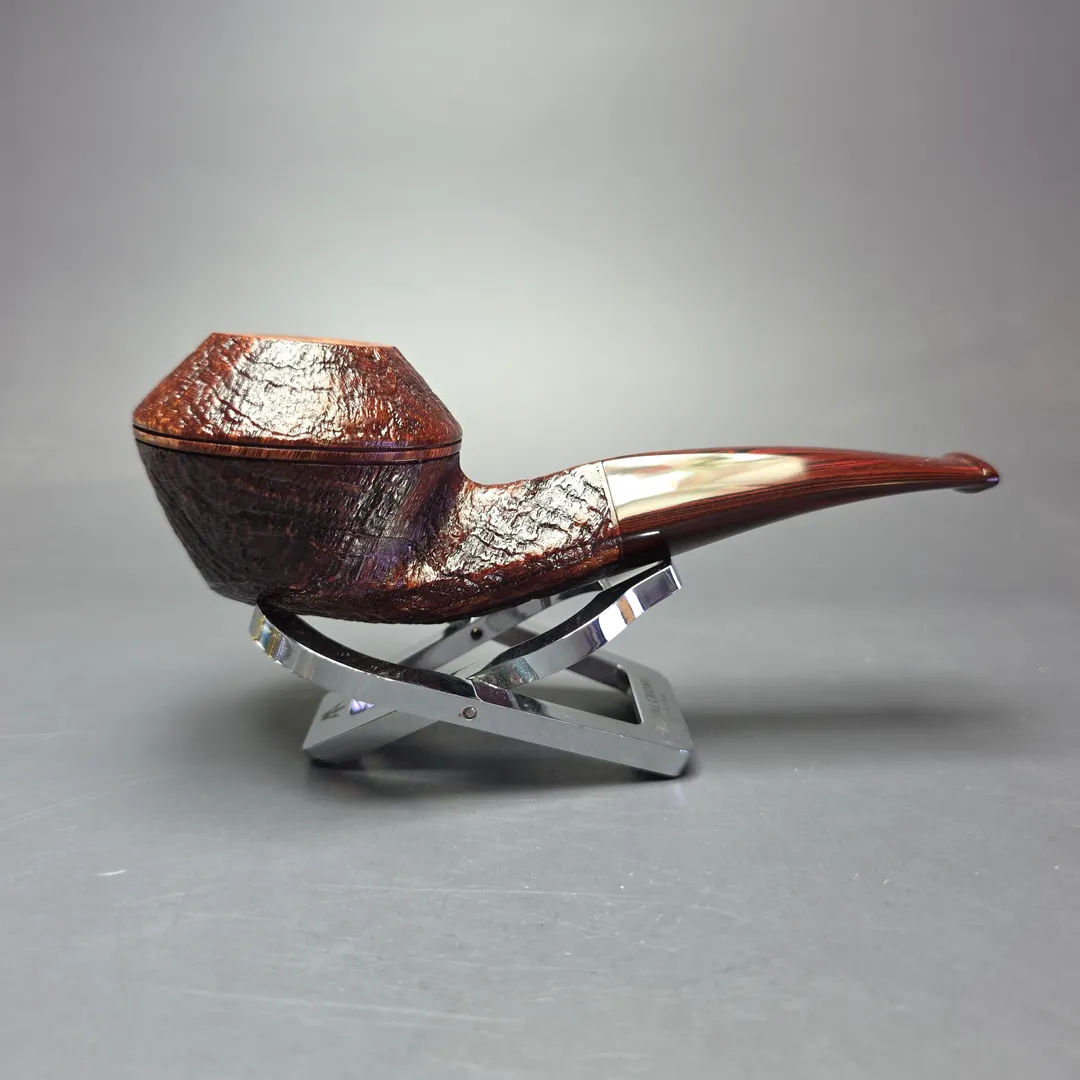 Such is certainly the case for a pipe like this one. It is, after all, a good, old fashioned bulldog. As with another Tendi listed in this batch, the design is firmly in the vein of squat, stout English bulldog renditions from the 20th century, with a clear nod to Dunhill once again in this instance. As Tendi’s pipes tend to be, this one is also dressed in a very rich sandblast, whose auburn finish is paired very nicely with a hand-cut cumberland mouthpiece.